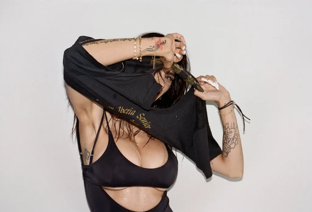 Mia Khalifa is the moment. Having already appeared in the limited-edition monograph Mia by Aries at the start of the year and, more recently, in Heaven by Marc Jacobs’ SS23 lookbook, this week, the Lebanese-American influencer appeared in emerging East London outerwear label Shoreditch Ski Club’s new campaign. But there’s a twist. The clothing brand that typically caters to cold weather has unveiled its first summer collection, featuring sporty, sustainable swimwear separates, lightweight leather parachute pants and a limited run of one-of-a-kind customised T‑shirts. And naturally, Khalifa was photographed in the LA sunshine for the accompanying campaign.