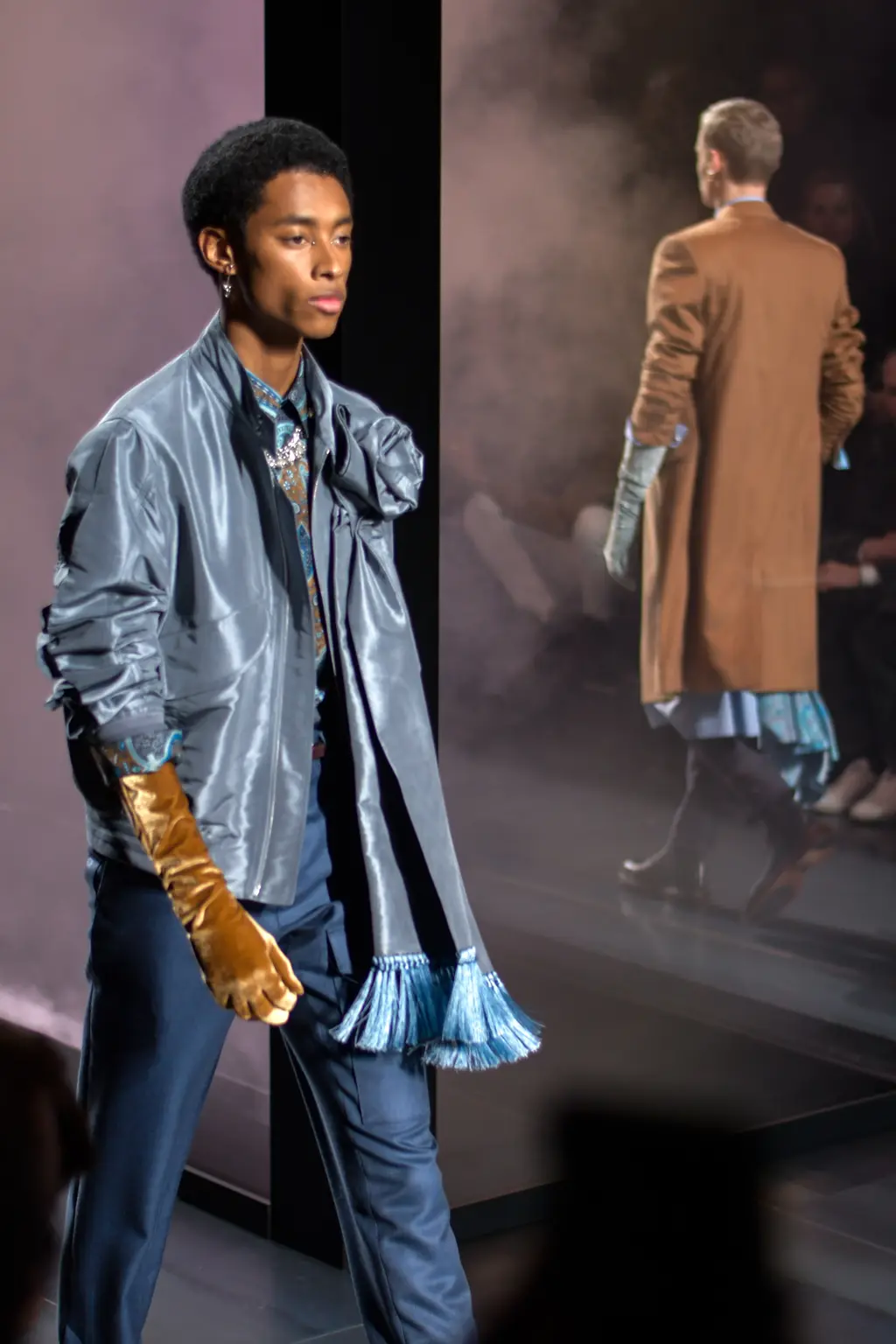 The whole thing was Creative Director Kim Jones’ tribute to the memory of legendary stylist (and longtime contributor to The Face) Judy Blame “a close friend and pioneer in the world of fashion, whose love of couture was an inspiration to us all”. The show felt about as far away from the recent sun-kissed, Stussy-Jordan Miami show (but for the craft), with an elegant silk moiré opera coat opening up proceedings – all proving Jones’ incredible shape-shifting and his ability to change a house’s direction whilst keeping consistent to its essential spirit.