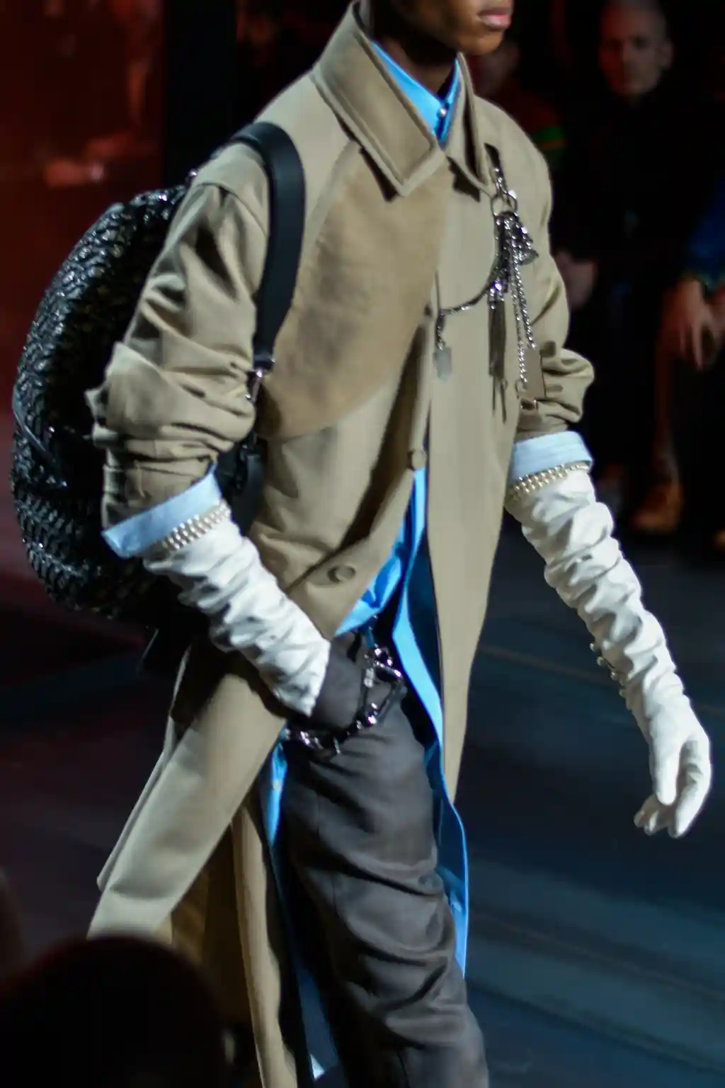 For people who are fans of Jones’ more streetwear inflected pieces, surely the bi-colour, slash-backed bomber will be the one they’re all after. That’s if they’re not yet ready to embrace a crushed velvet opera glove.