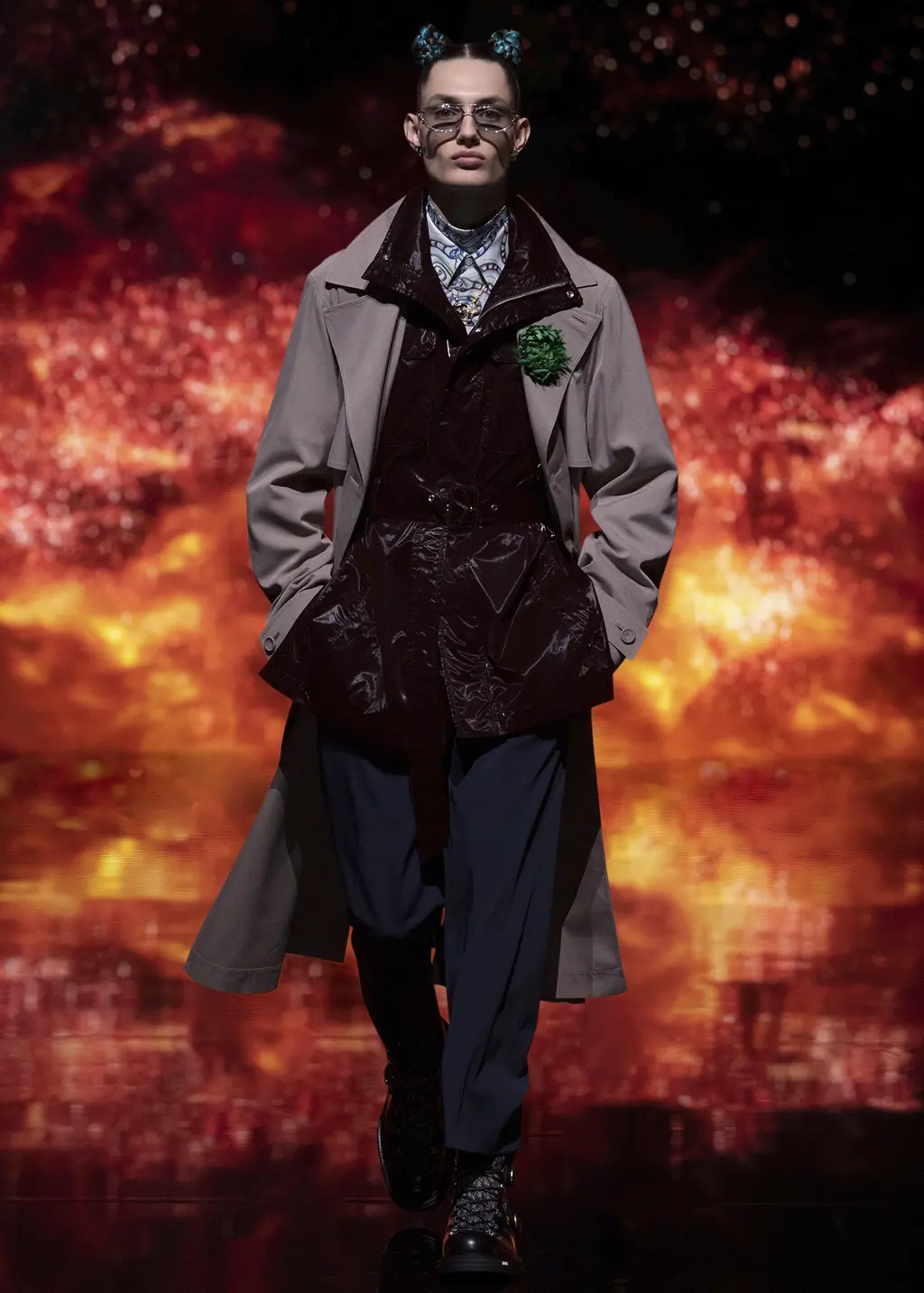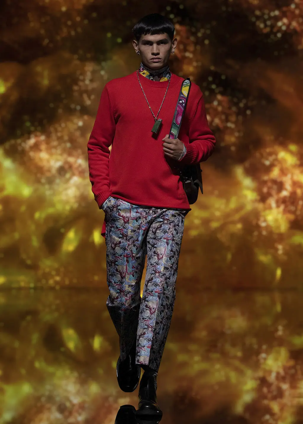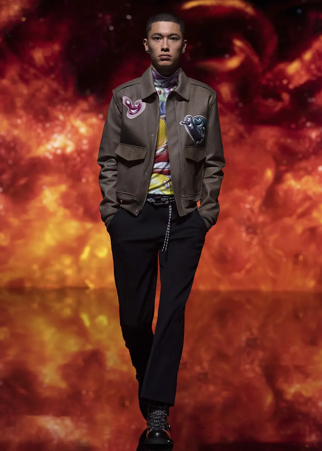 Yesterday, the Royal Mint’s newly commemorated David Bowie coin ascended 35,656 metres into space. Talk about a Space Oddity. But it’s an apt tribute to an artist capable of transcending this world, nevertheless. It seems fitting, though, that during a year in which we’re all desperate to escape to an out-of-this-world realm free of, well, the pandemic, Kim Jones, artistic director of Dior Men’s, took this as his cue for his AW21 show. Today, he presented a funkified version of the otherworldly galaxies hanging above our heads, blasting us head-first for a total of 10 minutes.