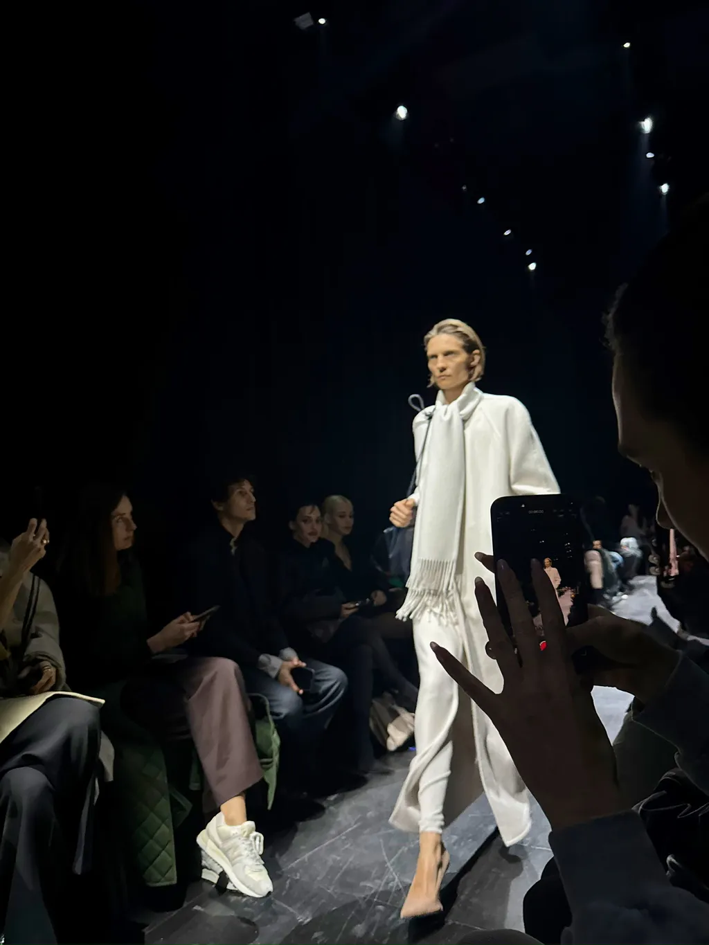 In between getting her make-up done, watching the show and sipping café noisettes (espresso with a splash of milk) she found the time to capture some bits of her day for us. Enjoy.
