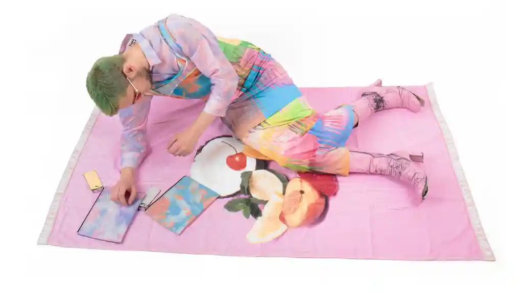 In the meantime, however, Spanish label Bimba y Lola has tapped Sebastian reinterpret their #thisisHOT SS20 collection. The dreamy, sun-soaked collaboration sees tropical fruits stamped across towels, swimming cossies and clutches, with his signature splash-dash, slimy plastic textures are worked into the fabrics. Capturing “the sweetness of juice, the coolness of ice, the feeling of water splashing the body”, it’s the perfect antidote for a locked-up summer.