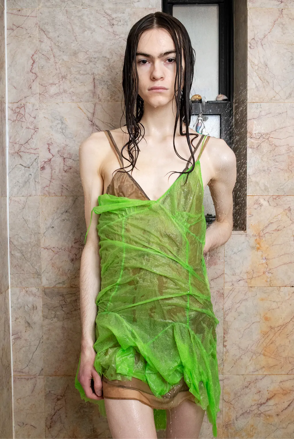 Lain wears dress GIVENCHY and slip dresses (worn underneath) stylist’s own