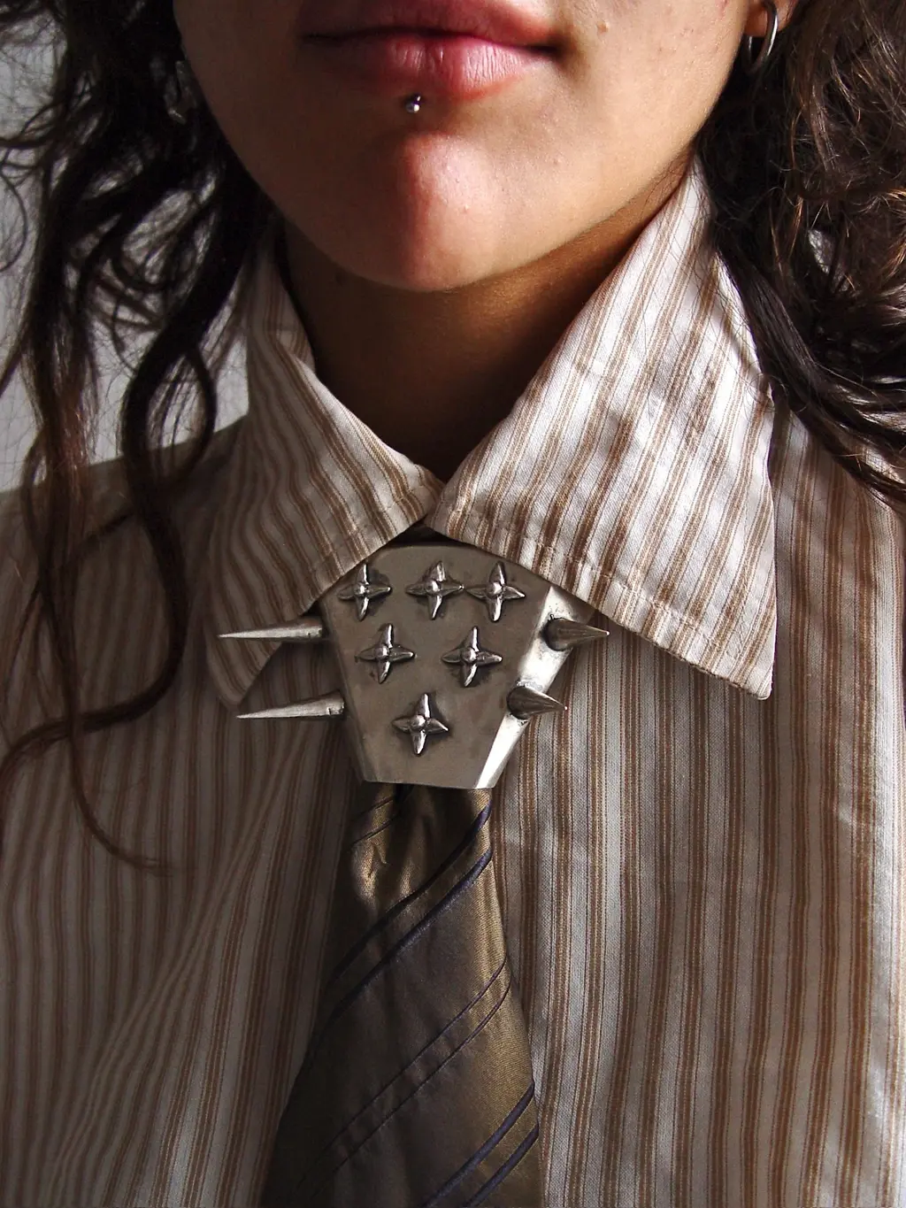 I recently realised something – not an inspiration, but the design goal. It’s something that Rick Owens said in one of his interviews for his homeware collection: he wants it to be something that you can look at and not know if it’s a futuristic piece or an ancient piece. You can’t decide which one it is if you don’t have the context for it. I like that idea and that approach to things – it’s something that I’m trying to achieve with jewellery, as well. As I switched the silver out, I searched for inspiration in museums and ancient jewellery. I love how the metal reacts, and all these heat-treated parts. I don’t want to hide [the process], I want to expose it. That’s a big part [of it].