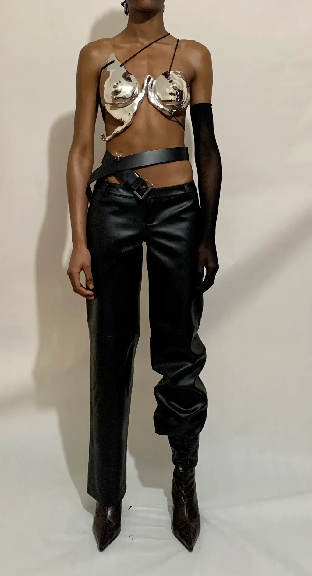 Patrycja Pagas moulds subtle yet strong silhouettes out of leather and metal, while Martyna Koltun’s strange, sensual eveningwear has been appreciated by MISBHV and model Jazzelle (aka uglyworldwide). Fal-ash makes a case for chaos approved by Caroline Polachek, and NAWARA.CO goes heavy – literally – on the accessories with metal bags.