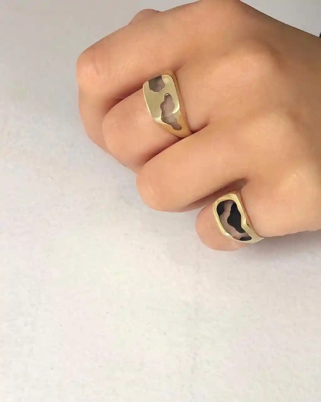 Lucien Clarke and Nick Grimshaw (among many others) have proudly shown Mercer’s rings off, much to the envy of their followers who have gone on to flood her DM’s, requesting custom orders. One time, she got over 700 message requests overnight (“I cried”), and it isn’t hard to see why. Each ring is unique and handmade by Mercer, the only constant being that they are gold, silver, and permeated with resin – her signature material.