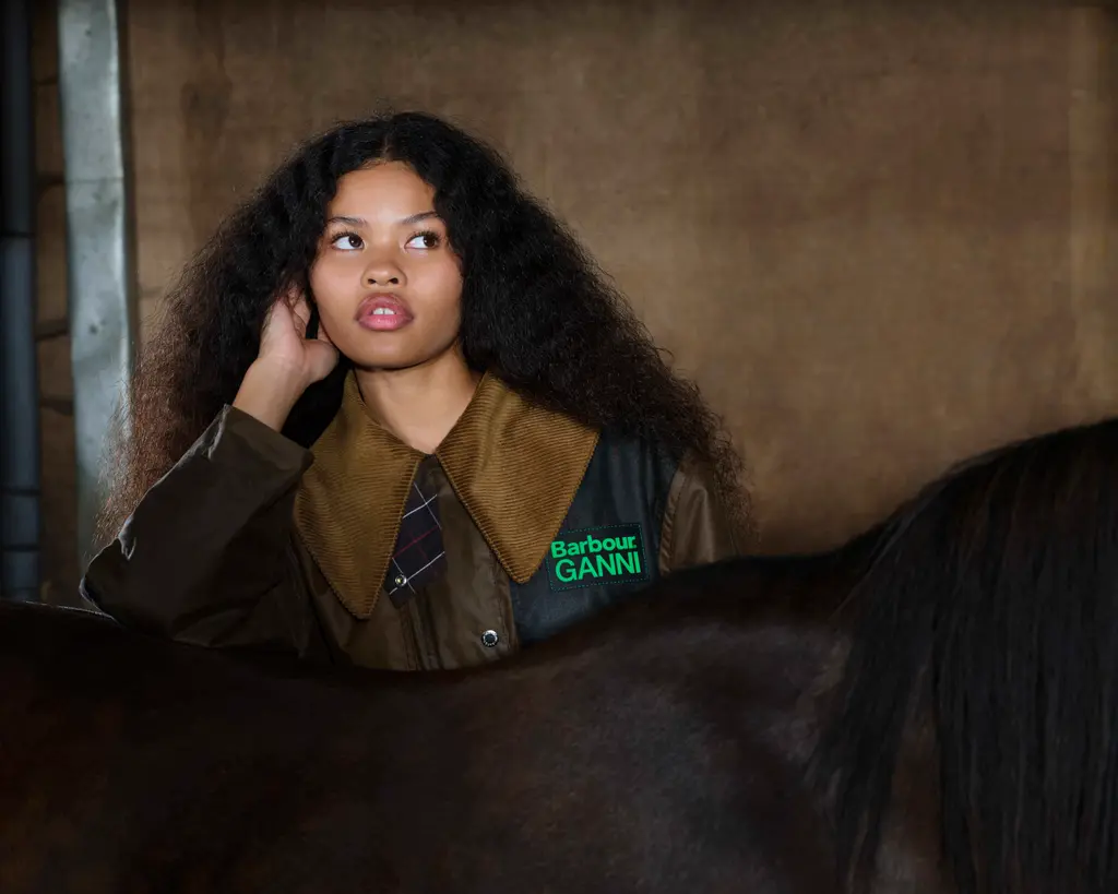 If something isn’t broken, don’t fix it… make it better. Okay, that isn’t actually the maxim, but it’s totally applicable here. Ganni and Barbour’s long-standing relationship has resulted in viral Barbour coats and accessories that have seen us through bitterly cold winters twice now, and so three times is, indeed, the sweet spot. As with each collaboration between the duo thus far, Ganni’s creative director Ditte Reffstrup began by coming through the Barbour archive. Alongside Nicola Brown, who heads up the women’s division, they rustled up a collection utilising the ubiquitous and timeless leopard print, giving it an extra bit of edge – plus corduroy collars that catapult these outerwear pieces into the present. Trench coats have been reimagined and include eyelets and functional detailing. And for those who are in the business of shopping for autumnal hero accessories, tote bags and checked scarves are up for grabs, too.
