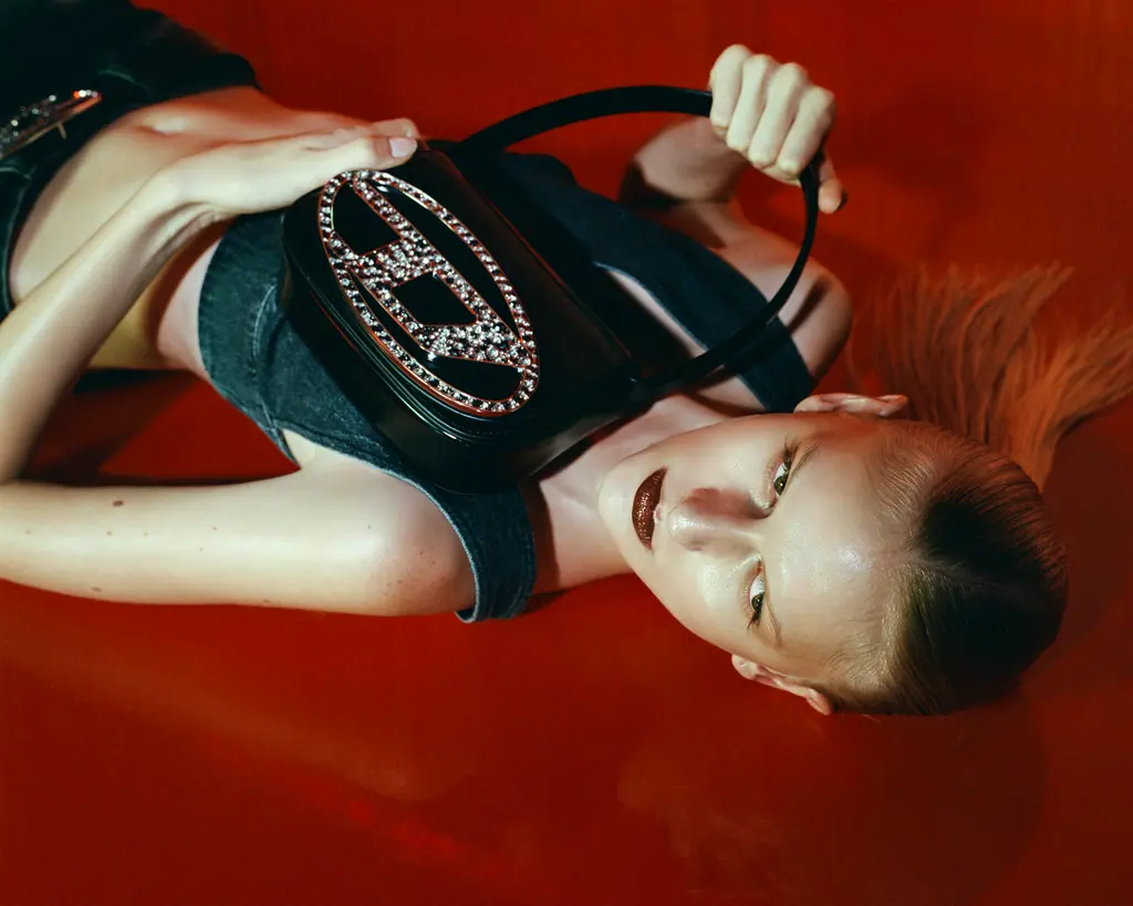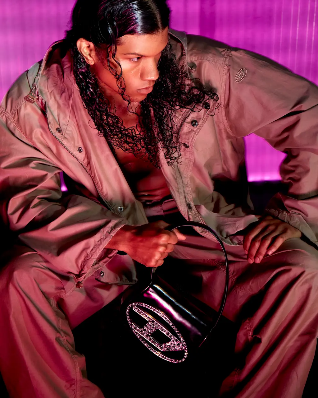 Diesel and LN-CC have come together to maximise their joint slay. Released today, the iconic 1DR – thee bag all the girls have had slung over their shoulders for years now (Julia Fox, Megan Thee Stallion, Kylie Jenner) comes in two new iterations: one festooned in black crystals, and the other a cute, dinky lilac D‑Vina-Xs bag.