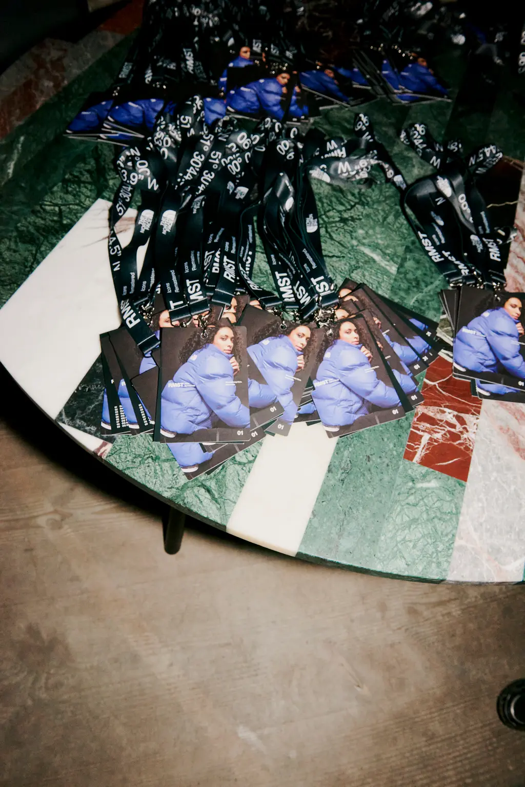 Buzzy singer-songwriter Ama Lou, poet James Massiah and jazzy MC Goya Gumbani all performed live, while legend Lil Silva and Bone Soda’s Tommy Gold spun bangers. Illustrator and sculptor Gary Card set the scene, adorning 180 with the new RMST jackets suspended on a Klein Blue corrugated backdrop and hiking-inspired graphics. Movement director Abdourahman Njie, meanwhile, choreographed the night to keep things ultra smooth. Some big names rolled through too – including Leo Kalyan, Danielle Marcan and Francis Bourgeois – talk about a locomotive!