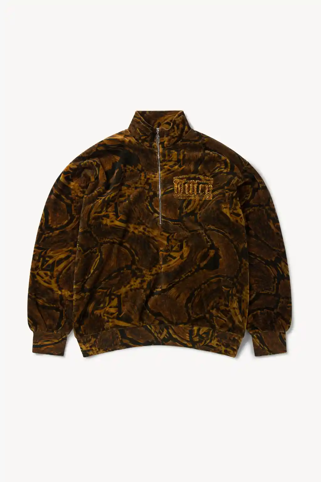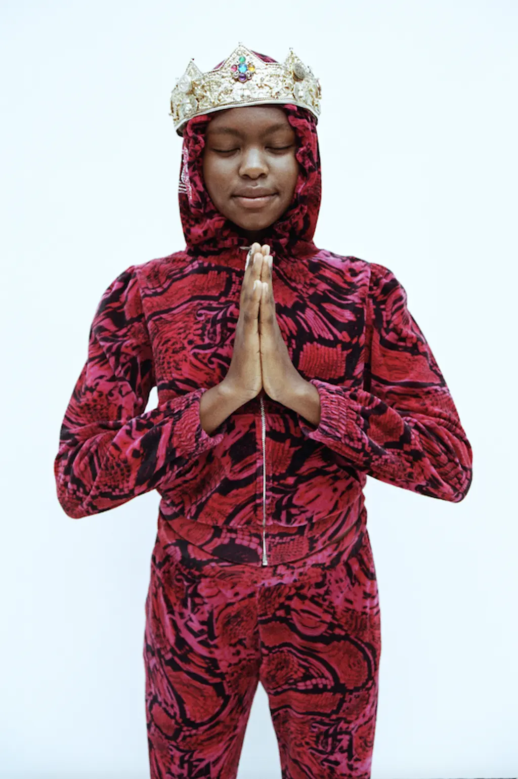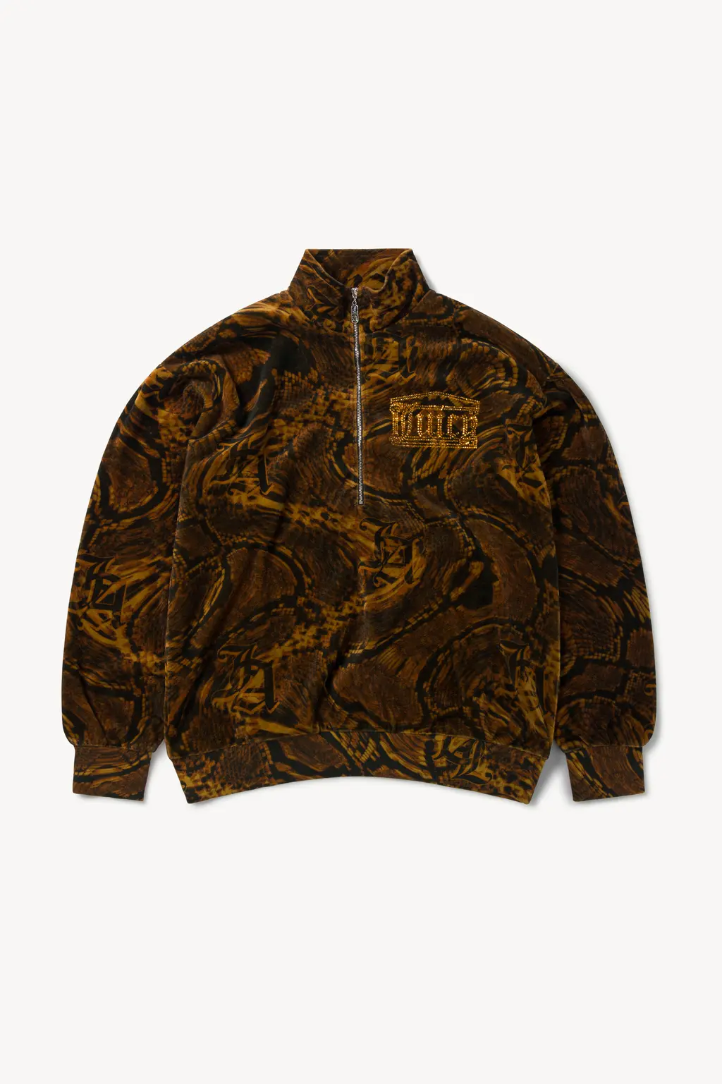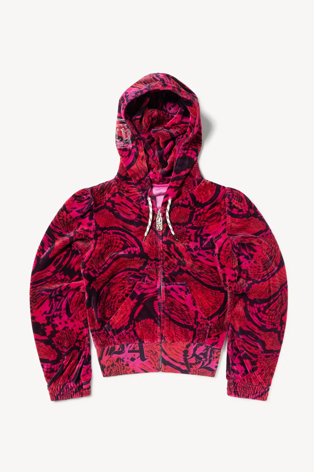 Given the sartorial legacy of Juicy in the early-’00s, the collaboration could have indulged in a serious dose of nostalgia, with visible G‑strings, flip phones and all that. But you’d be more on the money if you switched on an episode of Dynasty. “I tend to pick references from whatever I see,” Prantera says. “There is some nostalgia there, but maybe more like the ’80s, a time when things were a bit more raw looking, in my aesthetics, anyway.”