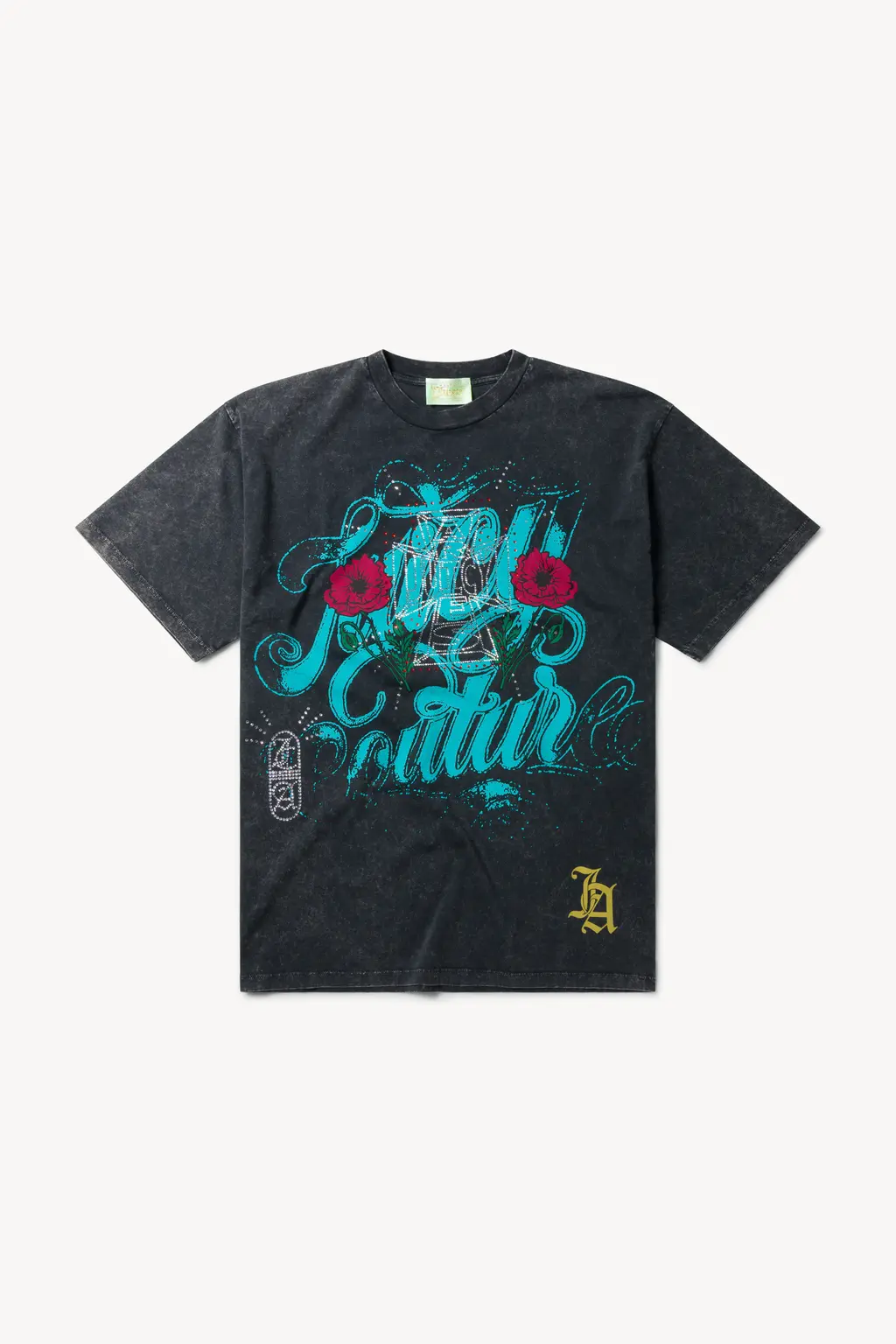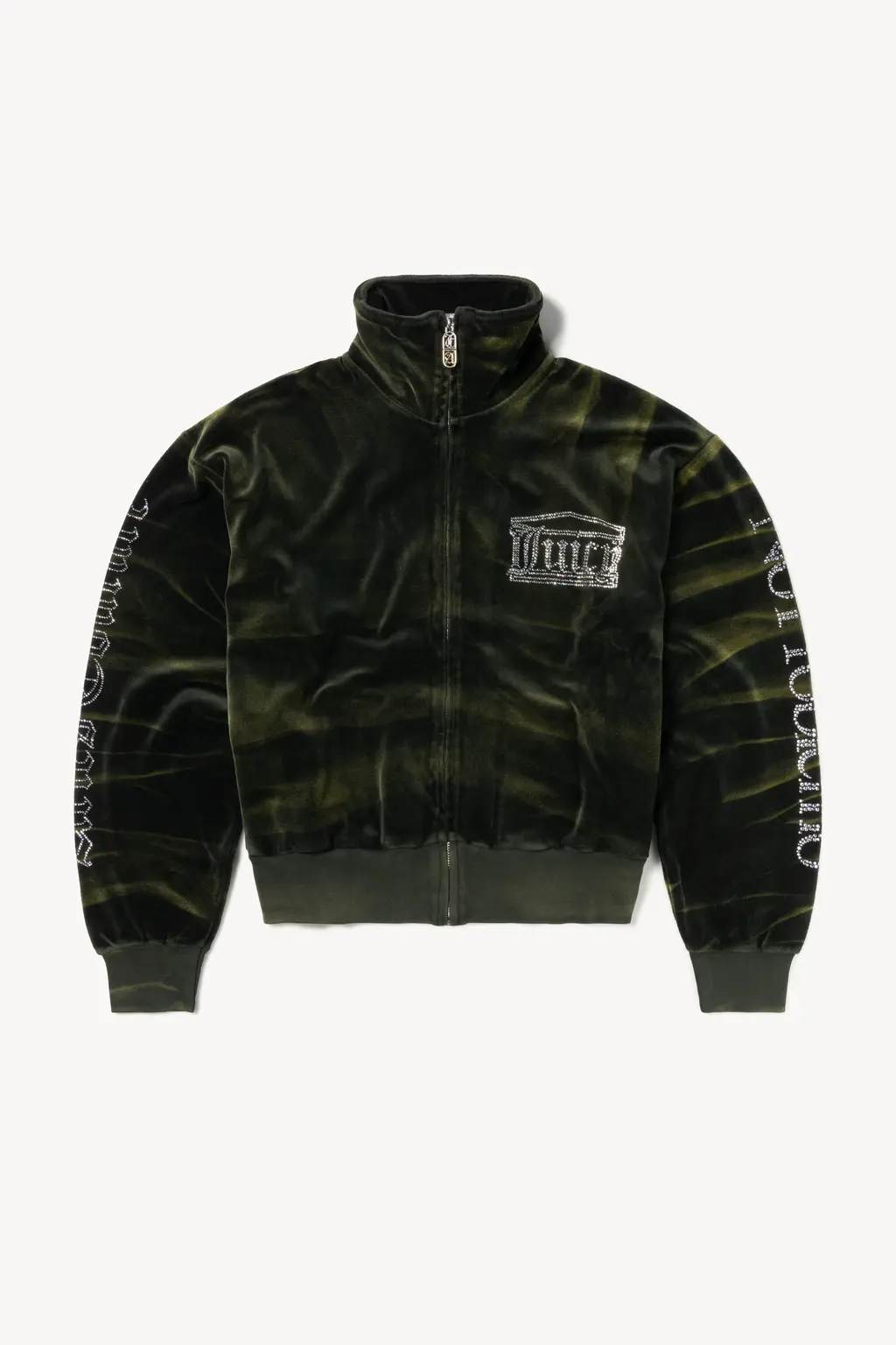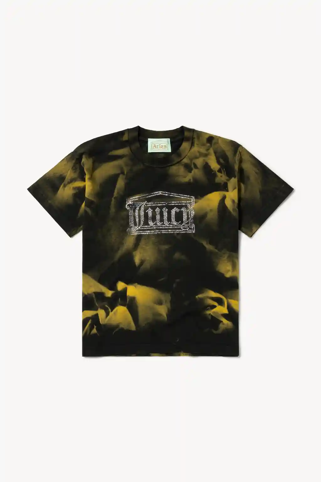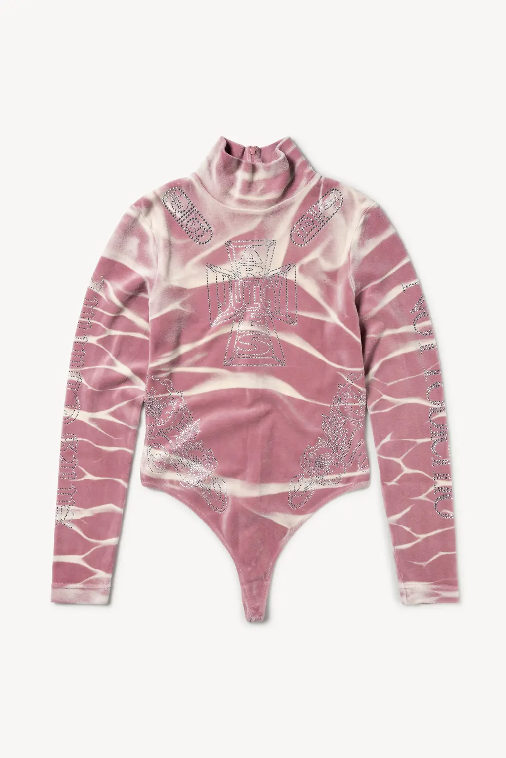 The Aries x Juicy Couture collection pulls no punches, taking its initial references from legendary American tailor Nudie Cohn, who made rhinestone Western suits worn by the likes of Dolly Parton, Cher and Elvis. “Rhinestoned Cowboys”, as the homage is titled, revels in the gaudy, Americana excess of Juicy and Nudie with day-glo colours, shrunken fits and diamanté monograms. Meanwhile, saucy slogans, slouchy, skate-influenced shapes and signature tie-dye prints keep Aries’ side of the bargain. Together, it’s a pretty potent cocktail, shaken and stirred for extra punch in a lookbook shot by Joshua Gordon.