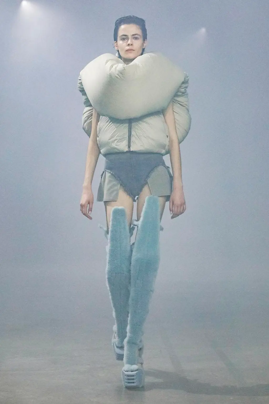 The original show was actually intended to be a comment on the climate crisis. But with Gvasalia having fled Georgia in 1993 – along with 250,000 displaced Georgians forced from their homes during the civil war that followed the collapse of the Soviet Union – the recent events in Ukraine, as he wrote in the show notes, “triggered the pain of a past trauma I have carried in me”.