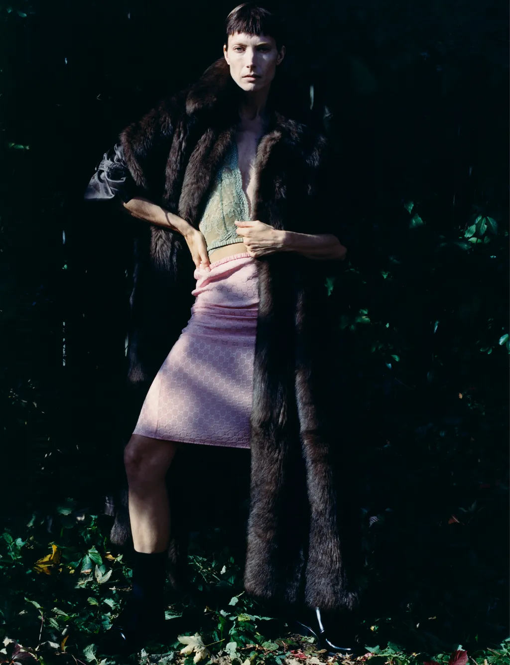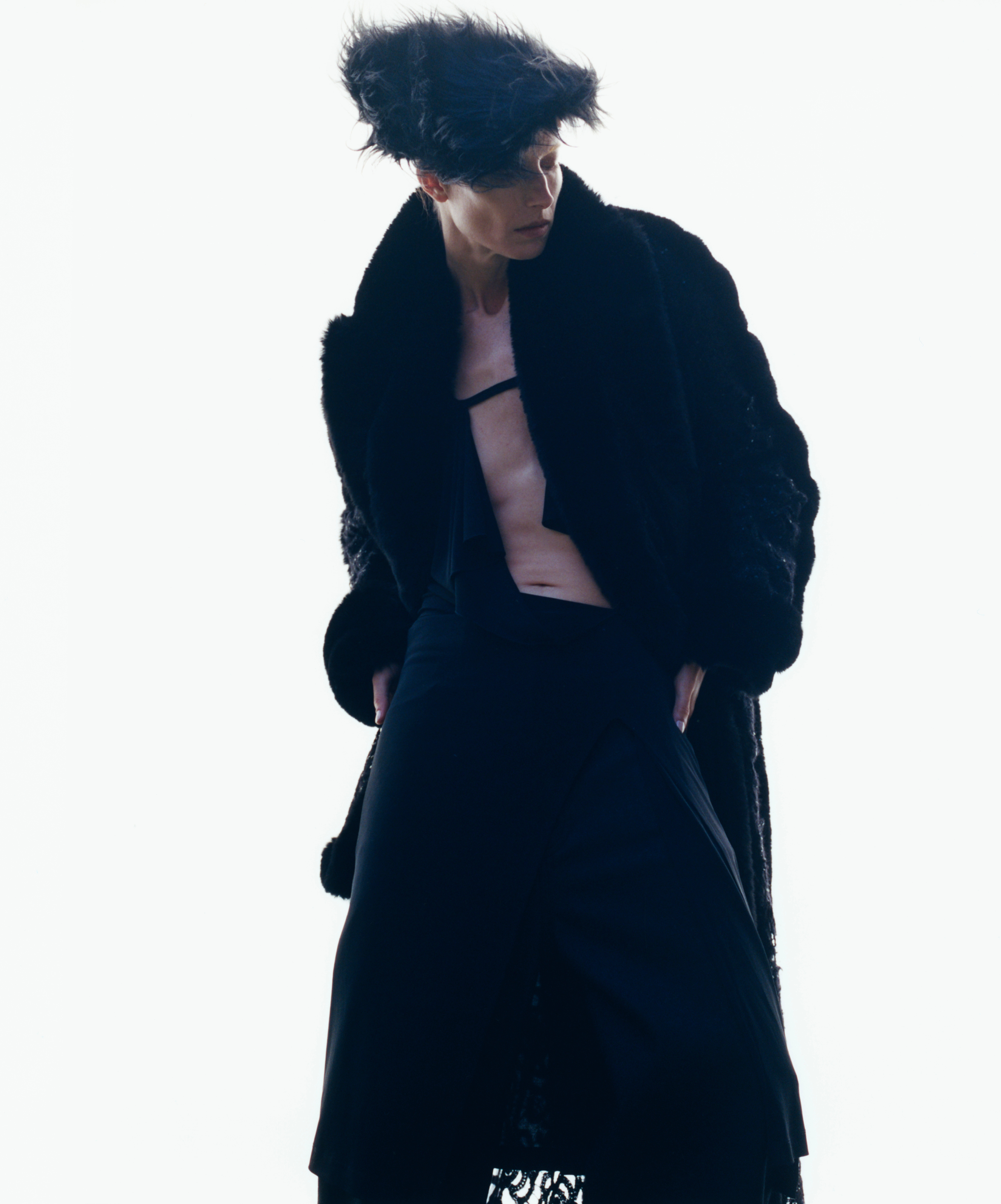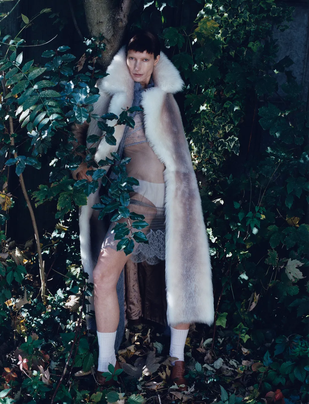 Coat, dress and stole FENDI, socks FALKE, shoes archive REPETTO courtesy of Nuovo and underwear stylist’s own