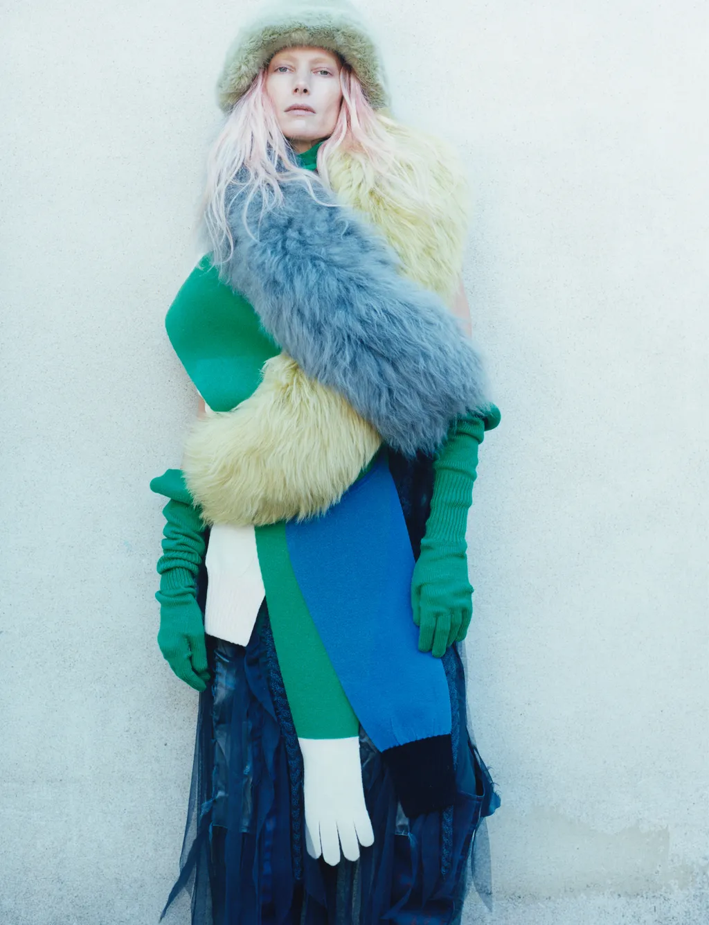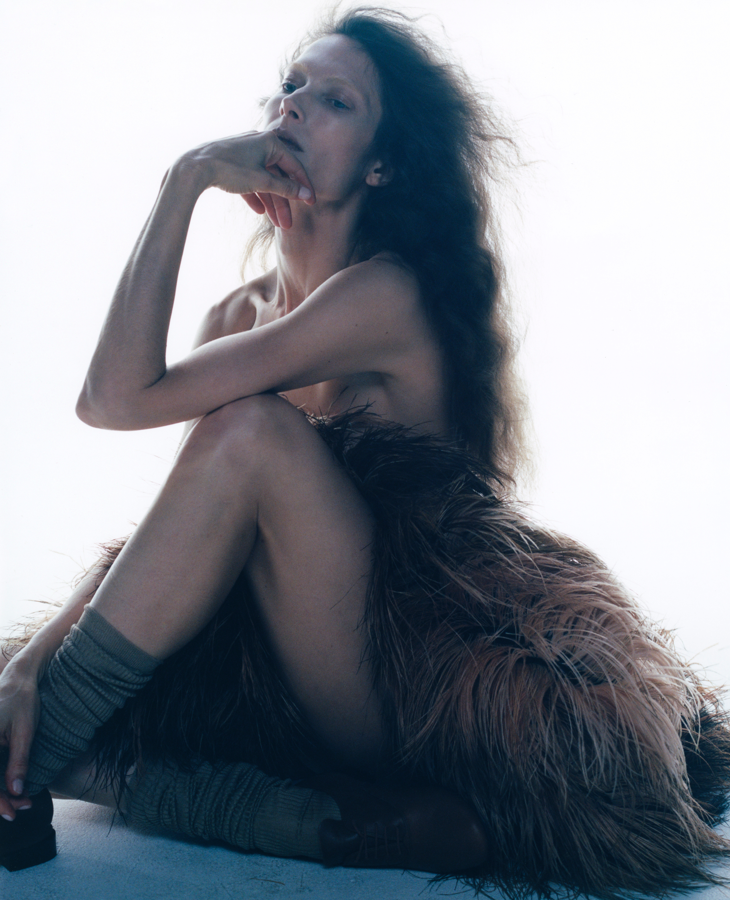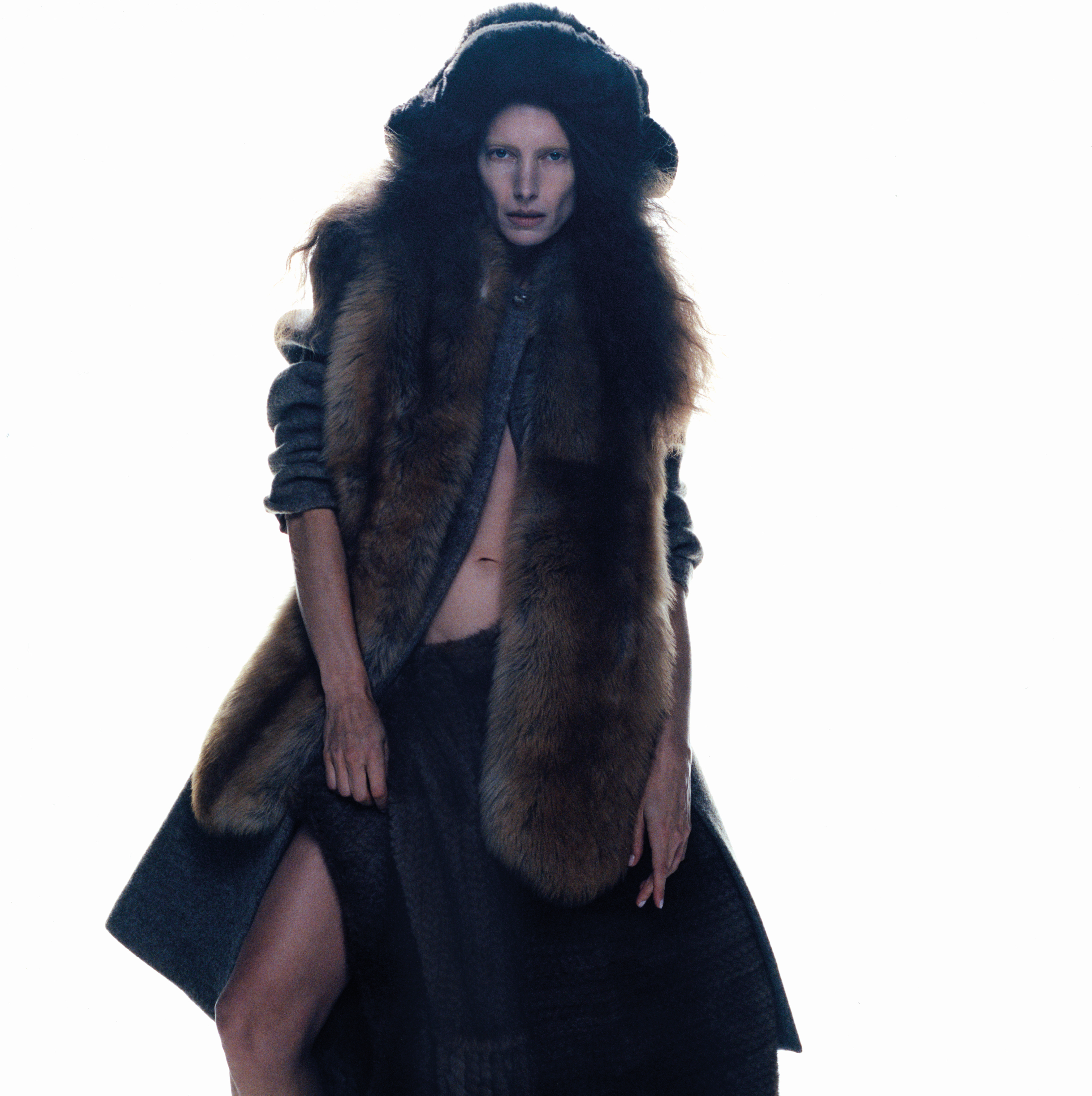 Coat, dress and stole FENDI, socks FALKE, shoes archive REPETTO courtesy of Nuovo and underwear stylist’s own