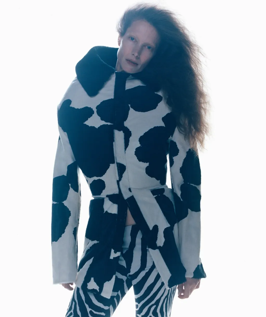 Jacket KIKO KOSTADINOV, bra and briefs SIMONE ROCHA and boots amd scarf courtesy of Nuovo