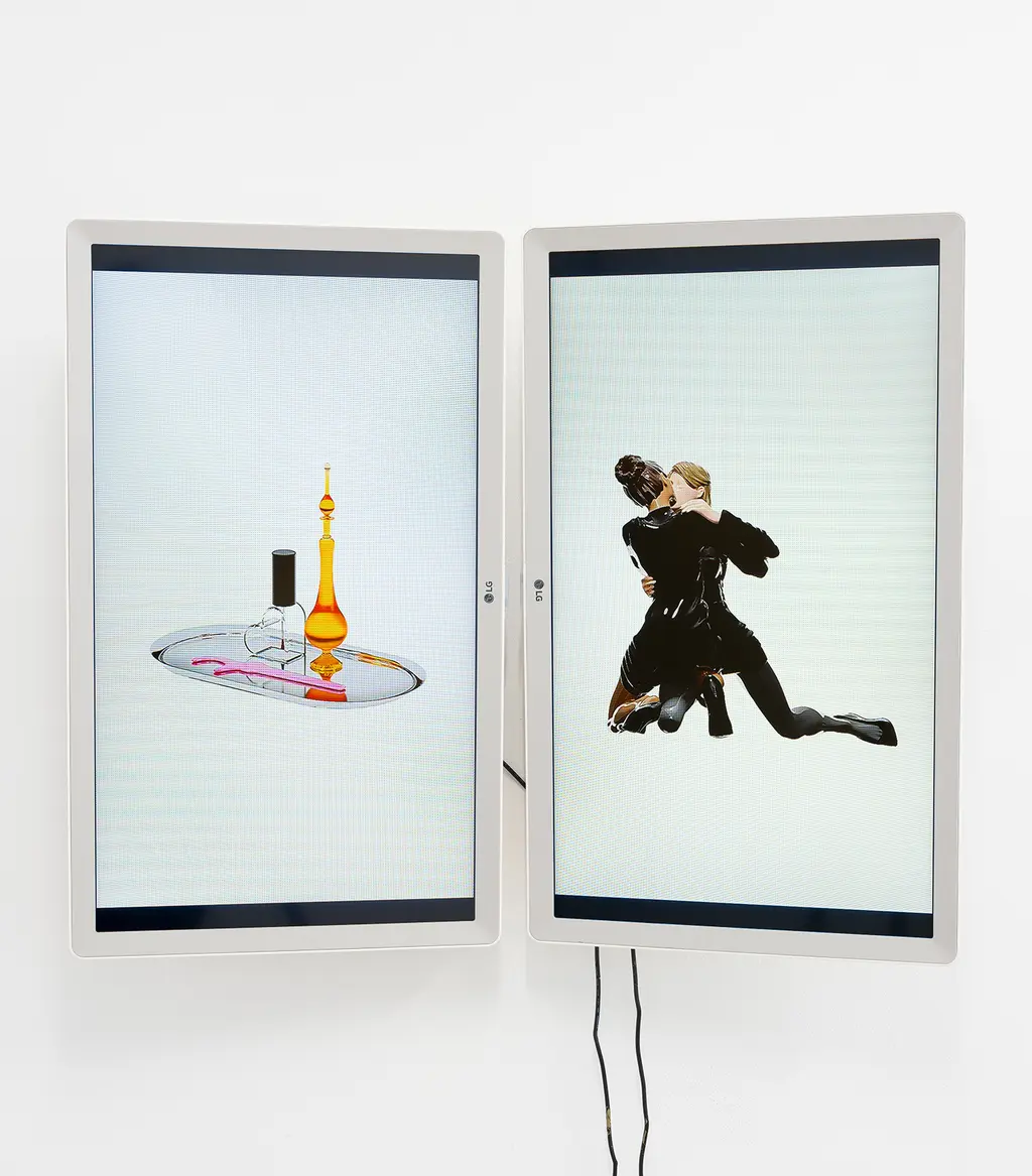 One day it’s a collage by pioneering feminist artist Miriam Schapiro, the next it’s a razor-sharp photograph of a ballgown turned into a BDSM trap by American conceptual artist Sarah Charlesworth, or a Michel Majerus painting from 2001, Pornography Needs You. And throughout, a satirical wit – like the time she dressed up as Marc Jacobs in a neck brace at one Halloween party, and Vivienne Westwood with just a leaf covering her modesty for another.