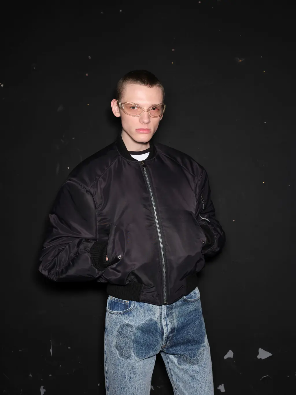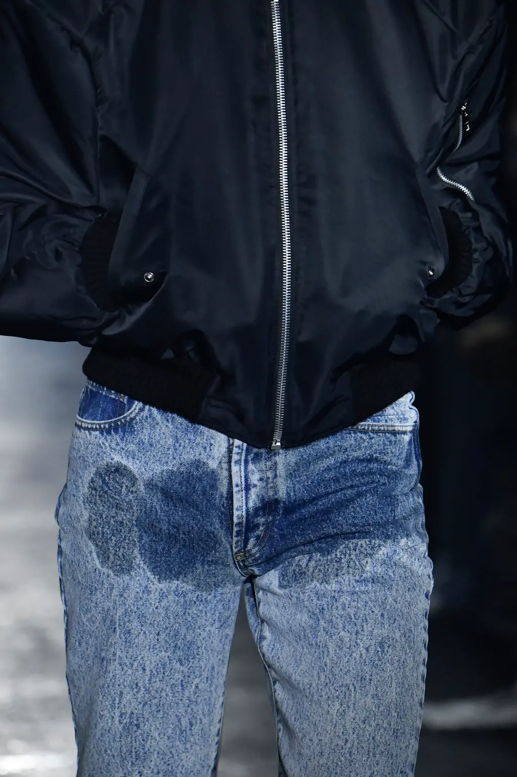 JordanLuca’s Jordan Bowen and Luca Marchetta have never been ones to conform. Since launching the brand in 2018, their designs have stretched and twisted conventional menswear silhouettes, riffed off underground fetish clubs, and blurred traditional gender codes to hyper-sexual heights. Last week, they really took the piss, with the brand’s “pee”-stained jeans causing a slippery stir on old and new media. The Daily Mail called them “bizarre”, while the New York Post asked “why would anyone wear this?” Well, Jordan might have the answer: “The fetish feeds the capitalists, but the capitalist is the fetish; an ecosystem where one feeds the other.. Plus, it’s fun watching old fogies get their knickers in a twist, right?