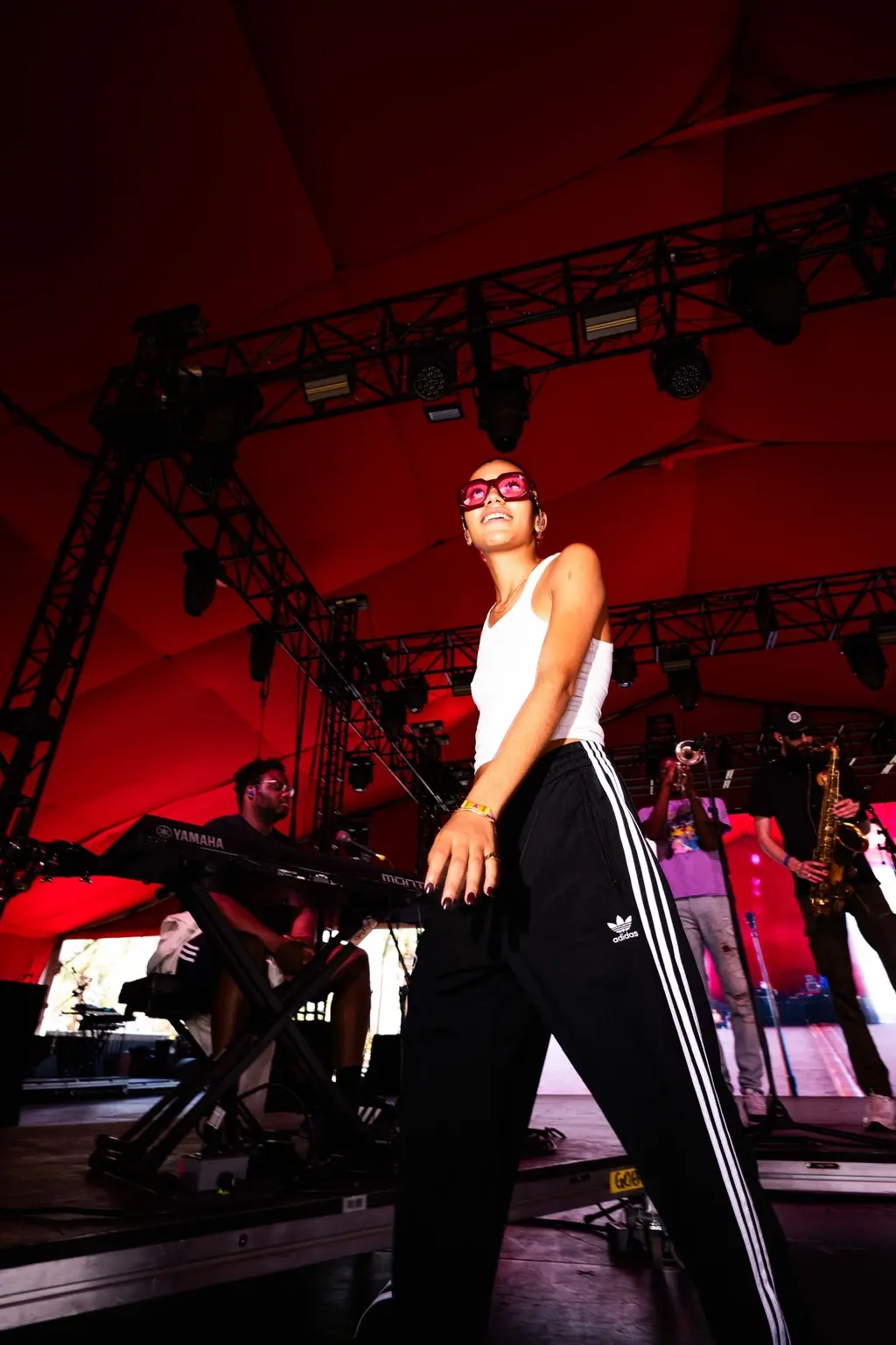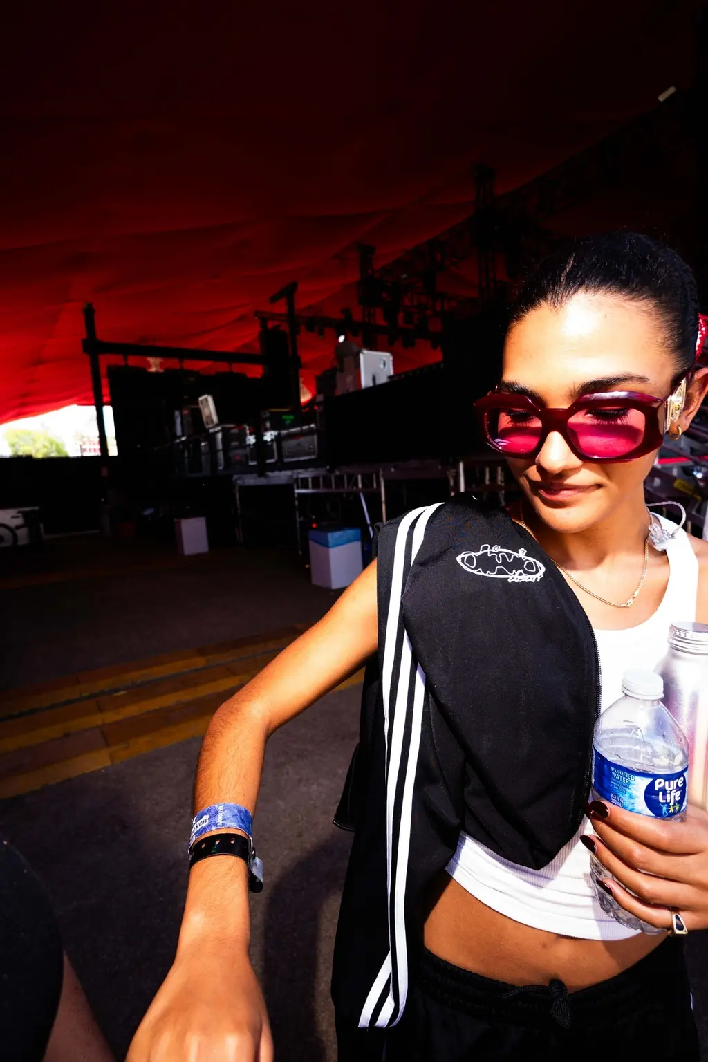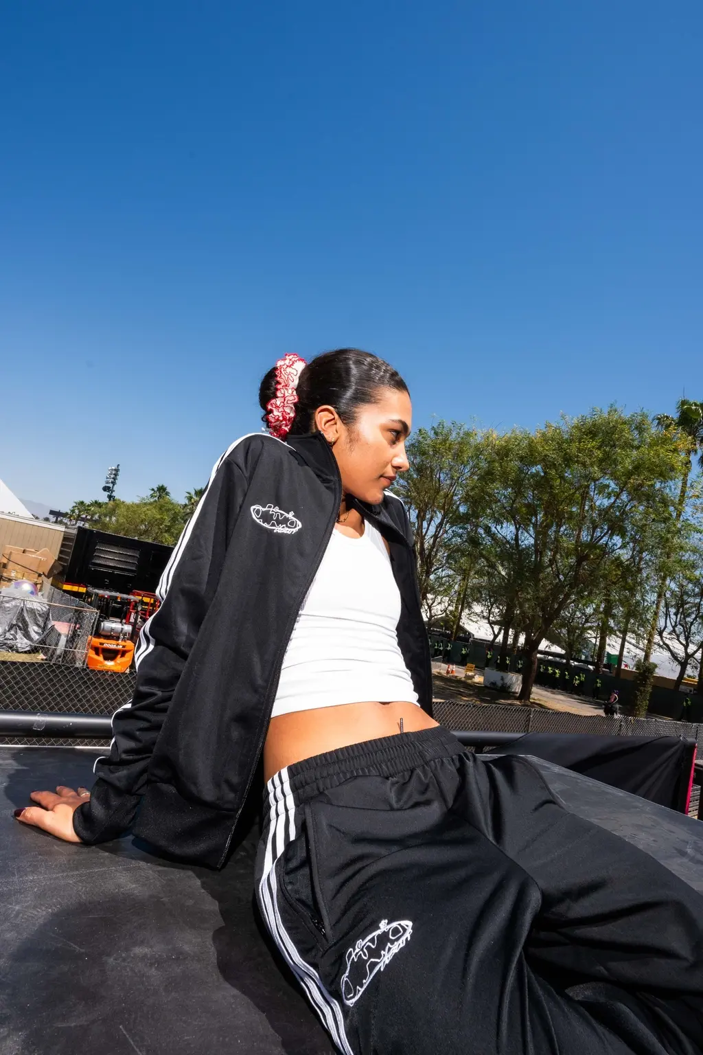 And in more adidas news, soul musician Olivia Dean has collaborated on a limited-edition capsule collection, just in time for her Messy Tour, which kicked off at London’s Hammersmith Apollo last night. The collection – which includes a Firebird Tracksuit set and a lilac T‑shirt designed by Dean and the adi team – features her scrappy, handwritten logo as well as a hand-drawn white flower designed by Emily Anderson, who was behind the motif of Dean’s 2023 debut LP, Messy.