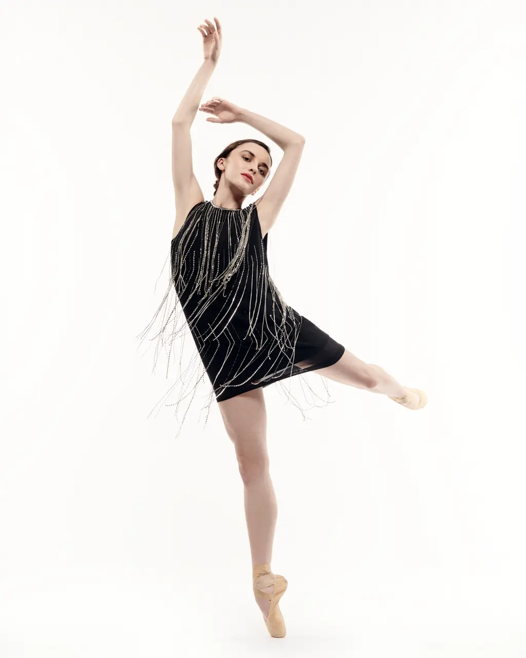 Two of the past year’s biggest microtrends collide in AllSaint’s latest collaboration. Balletcore meets indie sleaze as young Royal Ballet dancers model the brand’s latest collection, clad in rugged biker jackets, beaded mini dresses and leather trousers, getting some studio time in at the Royal Opera House in Covent Garden. Featuring Bomin Kim, Viola Pantuso, Brayden Gallucci and Joonhyuk Jun, each dancer selected their six favourite pieces from AllSaints’ winter collection for the shoot. And, as a bonus, the partnership also comes with a limited-edition T‑shirt and hoodie designed by The Royal Ballet, with 10 per cent of the proceeds from the entire collection going to The Royal Opera House Covent Garden Foundation, which supports The Royal Ballet and The Royal Opera at a time when the arts need it the most.