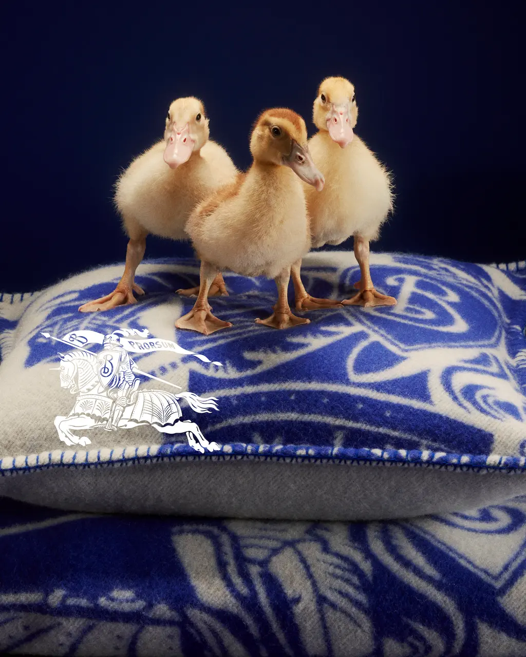 Here’s one way to get us soppy: recruit a host of furry four-legged friends, prop them up in a Christmas campaign and let the office oohs and awws commence. Daniel Lee had the right idea for his first holiday campaign as creative director at Burberry, bringing a trio of chicks, a duck and a puppy to help flog the house’s latest accessories: tartan scarves in brightly coloured hues, smooth side bags, shearling-lined mules and a plush cushion taken from his debut collection, presented in February, that looked to cosy domesticity and a welcome return to classic British emblems. Too early for a mince pie? Not anymore.