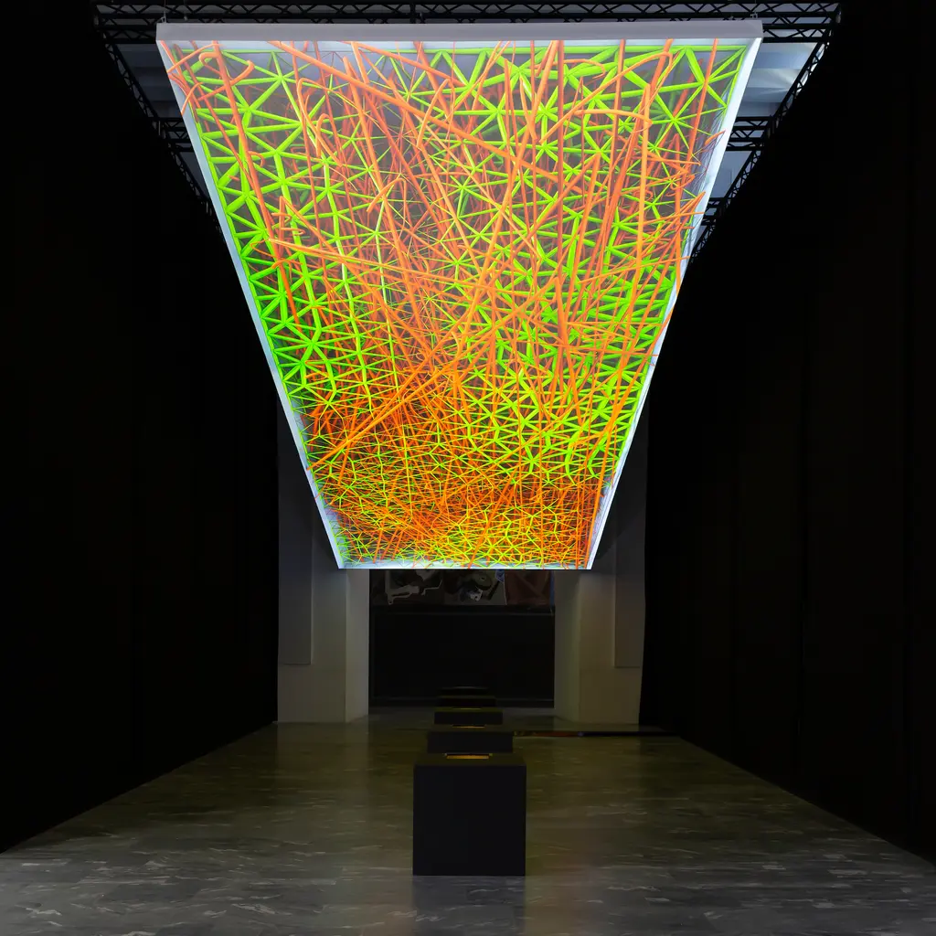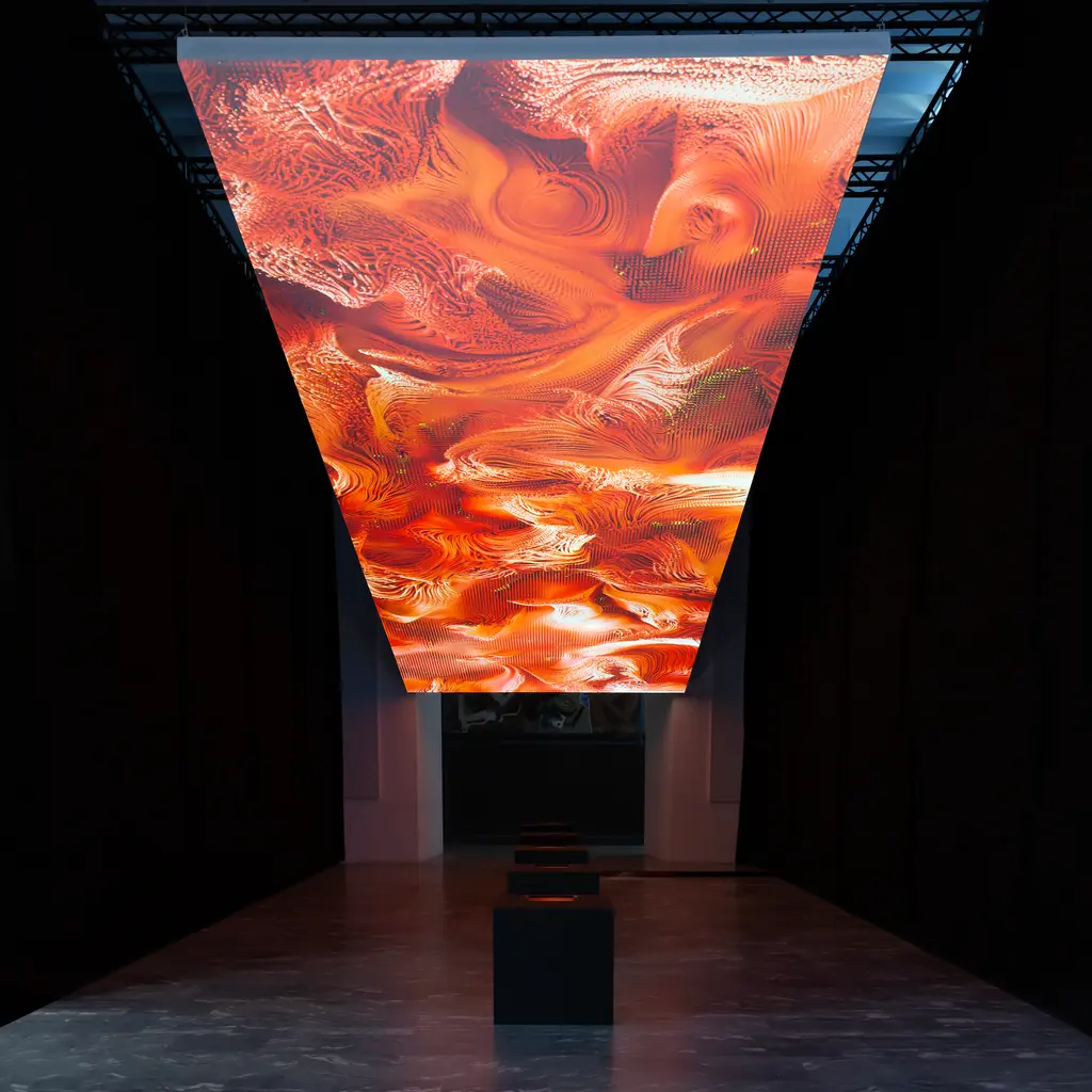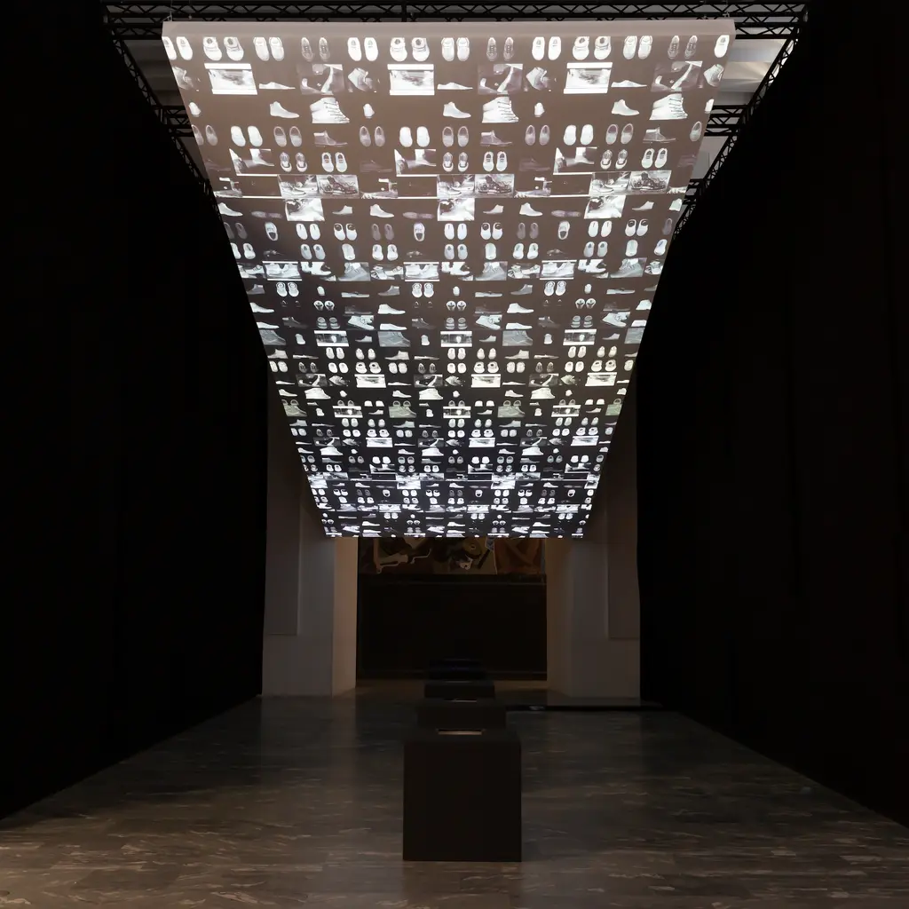 Pushing her agenda further, Oude Hengel launched her very own installation at Milan’s furniture fair Salone del Mobile 2023 last night. Made in collaboration with Ouchhh – a studio that connects the dots between art, data and tech – Hengel’s immersive experience merges AI technology, data-gathered archival imagery related to the Timberland 6‑Inch, and mind-boggling patterns and mosaics that combine Timberland and Oude Hengel’s data to create an original piece of work, shown on a mammoth screen. Here, Hengel’s design process is communicated in a whole new light – from machine to screen, if you will.