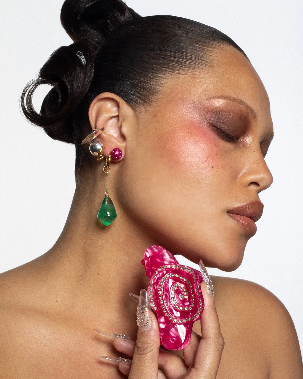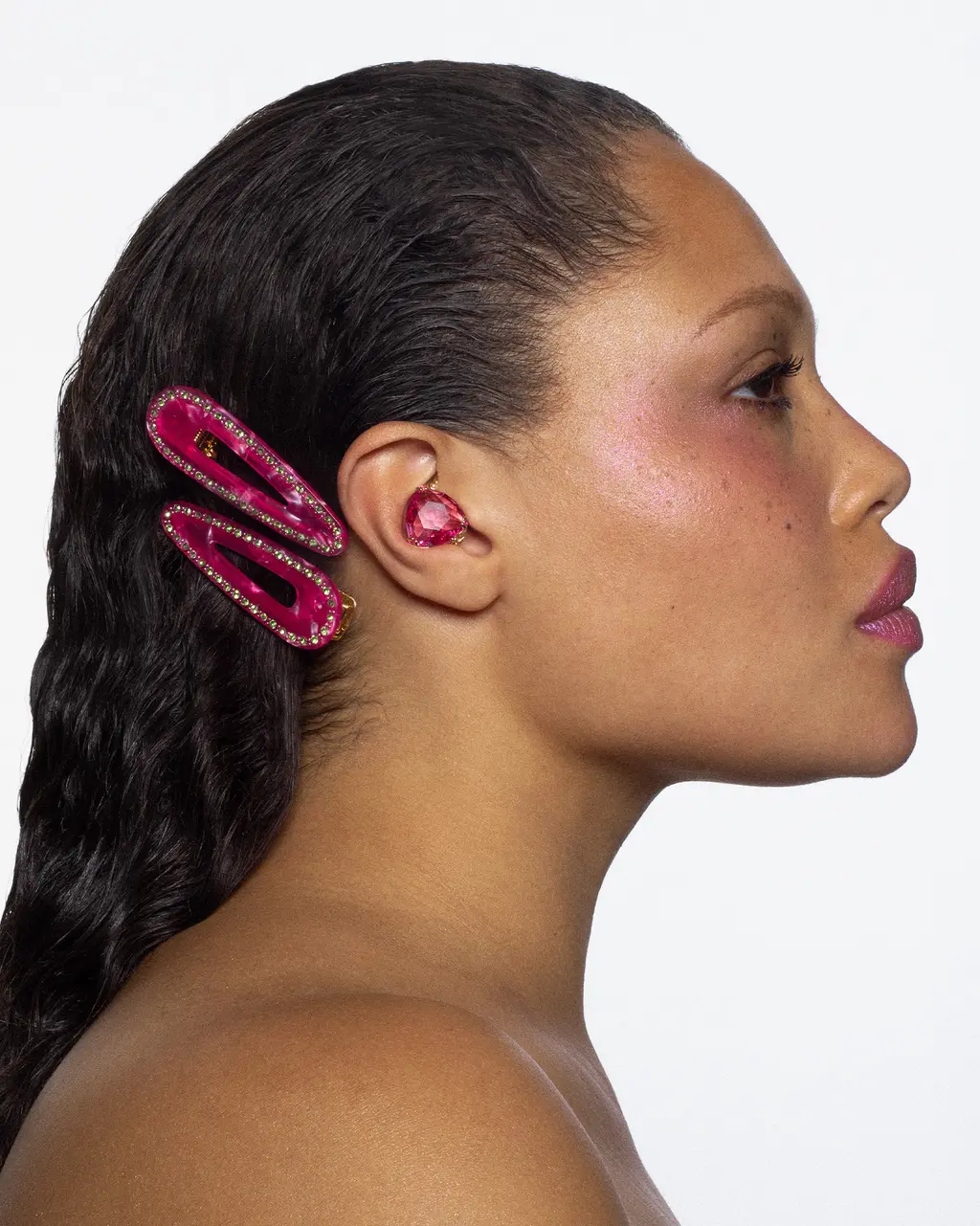 It’s been a big year for London-based accessories brand Katya. Founded by stylist Kate Iorga in 2022, with an ambition to “reinvigorate the art, process and joy of accessorising”, the brand’s glam ’80s-inspired hair claws and clips have become a go-to for Bella Hadid, FKA twigs and Edie Campbell. And in the brand’s biggest moment yet, earlier this month Dina Asher-Smith sprinted through the finishing line wearing a Katya clip, where she claimed the title for Britain’s fastest woman. Not bad, eh? Now, Katya’s back with a brand-new collection along with a shiny campaign, starring model of the moment Alva Claire. The Katya Rose Collection 2 retains the brand’s much-loved, embellished styles, but now in pearlescent mocha, juicy tangerine, hazel and, taking centre stage, hot pink. Claws out, you lot.