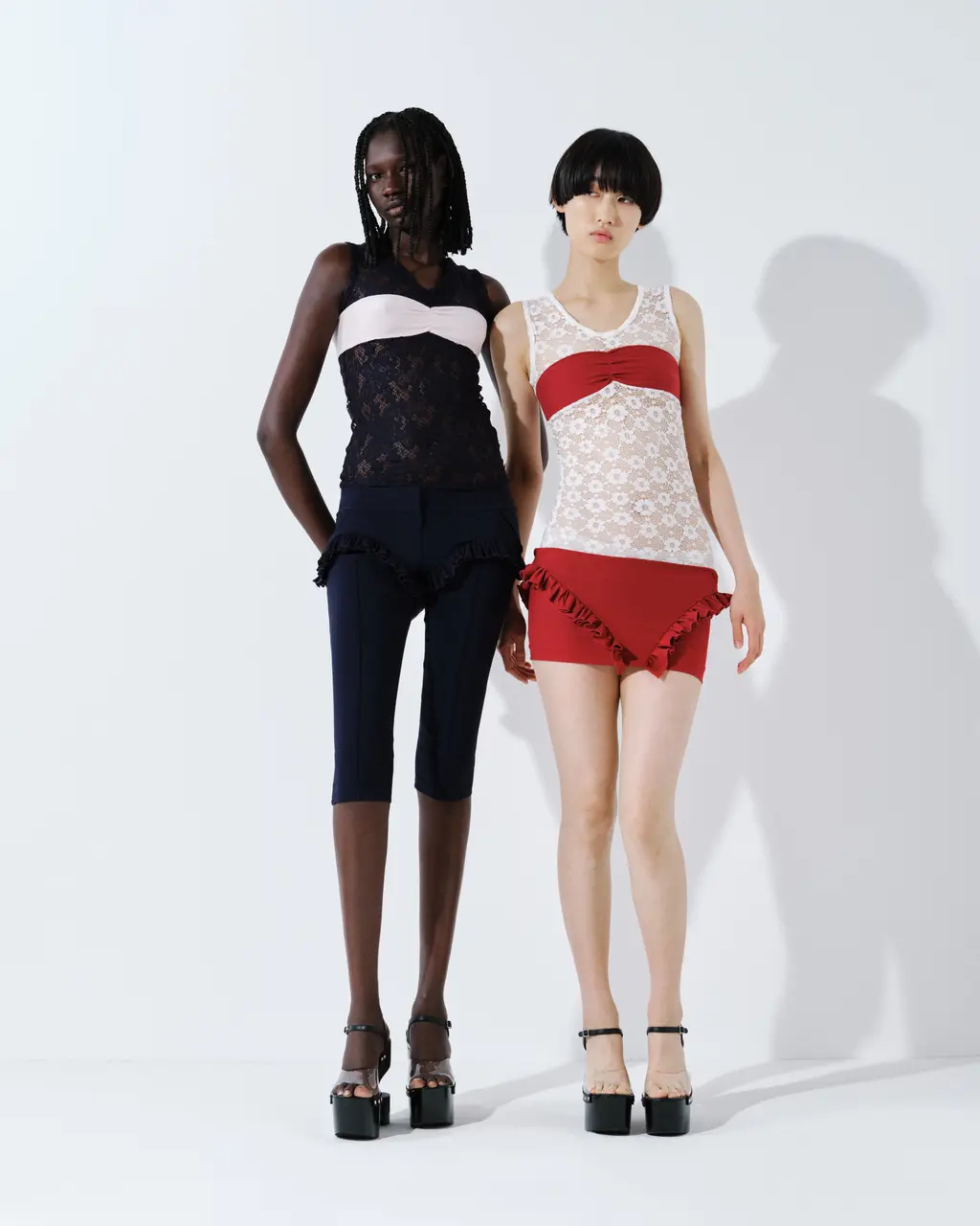 When Paolina Russo unveiled its AW24 collection in January, the atmosphere was electric. The pieces were equal parts functional and innovative, with the crossover corsets, crochet bonnets and kaleidoscopic jeans personal favourites. What’s more, the joy radiating from the duo behind the label, Paolina Russo and Lucile Guilmard, was palpable. Although SS25 was only showcased as a presentation, the messaging is just as striking, inspired by an idyllic year of globe schlepping, LA’s laid-back approach to dressing, and MGMT’s Time To Pretend. Titled “Gap Year”, the line is stocked with illusion knits, tie-dye jeans that ramp up colour to the max, and folkish-inspired corsets for “soft warrior vibes”.