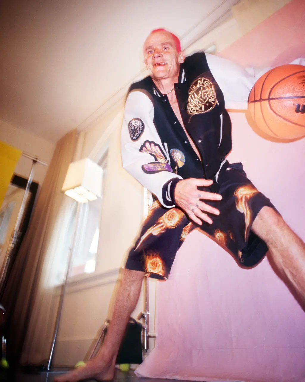 Not an actual flea, mind you. The Flea, bassist of Red Hot Chilli Peppers, who was shot by Tyrone Lebon for Stüssy’s upcoming, off-the-wall collaboration with Belgium’s finest, Dries Van Noten. Expect the brightest colours, loudest prints, camp shirts and plenty of rhinestones.