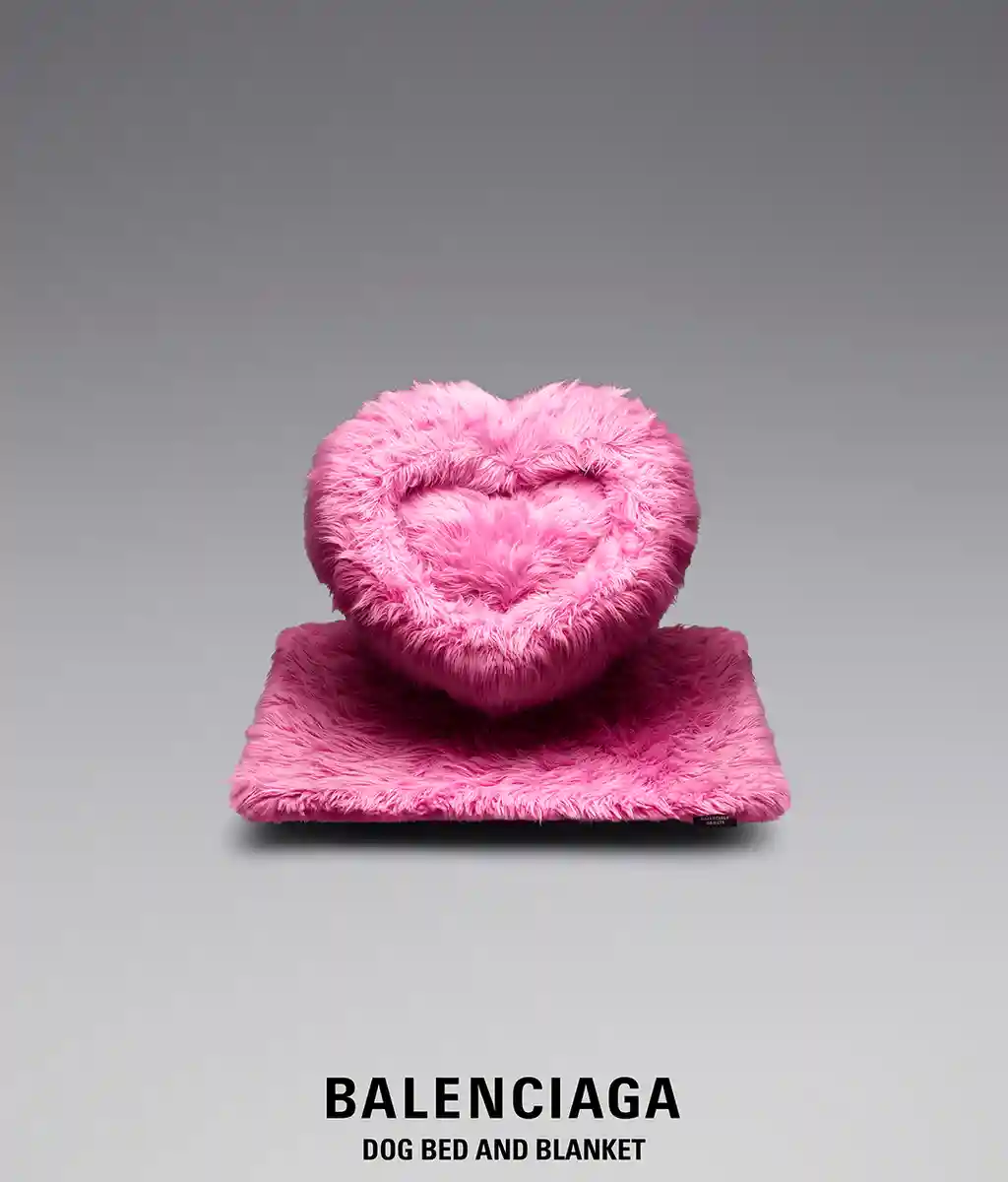On Wednesday, Brooke McCord, Digital Director at THE FACE, was spotted cooing over Balenciaga’s Objects line, a newly-launched range of products that includes a £615 lunchbox, beer coasters, a beer can candle holder and a very modest sofa. And for the four-legged babe in your life, a fluffy pink, heart-shaped dog bed, blanket and necklace with a personalised tag. A source close to McCord reports she was considering the spiked dog bowl.