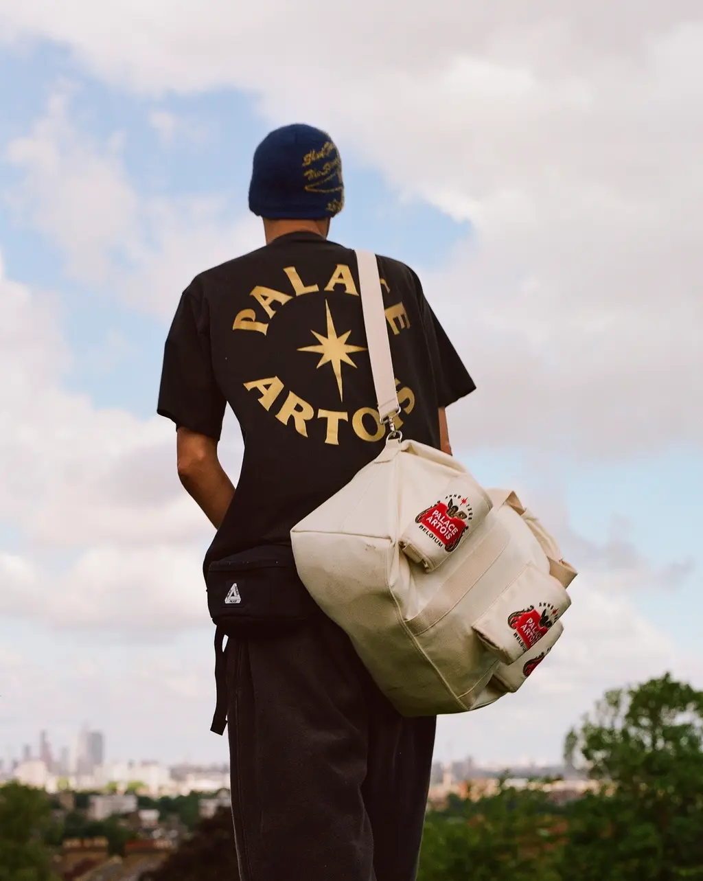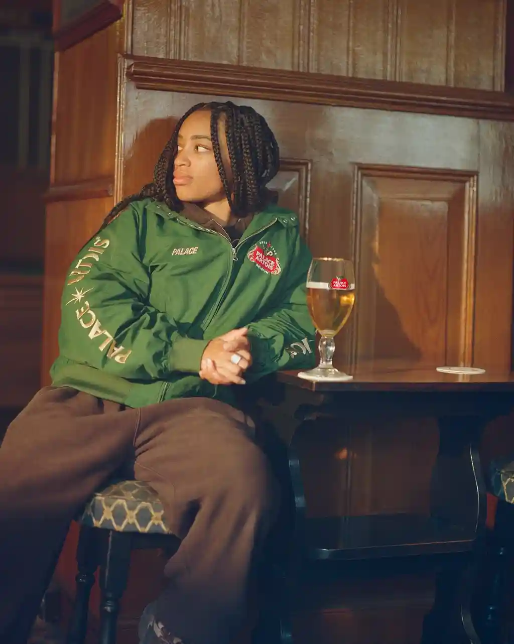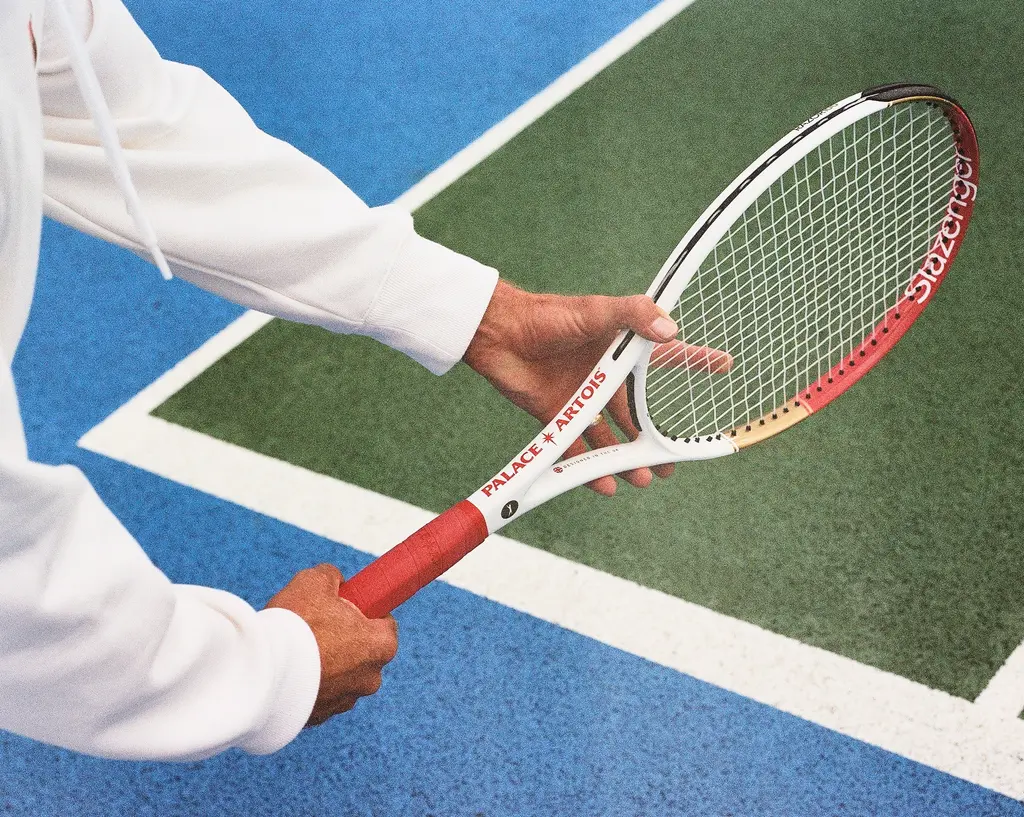Palace and Stella Artois are joining forces again for a capsule collection perfect for both standing outside the Blue Posts in Soho, or on Henman Hill during Wimbledon. The stellar (get it?) union includes a cracking moss-green track jacket with “Palace x Artois” emblazoned across the sleeves, motif-laden hoodies, trucker hats, tennis racket cases, and, get this: tennis balls. The collection lands in-store at Palace today, would you believe.