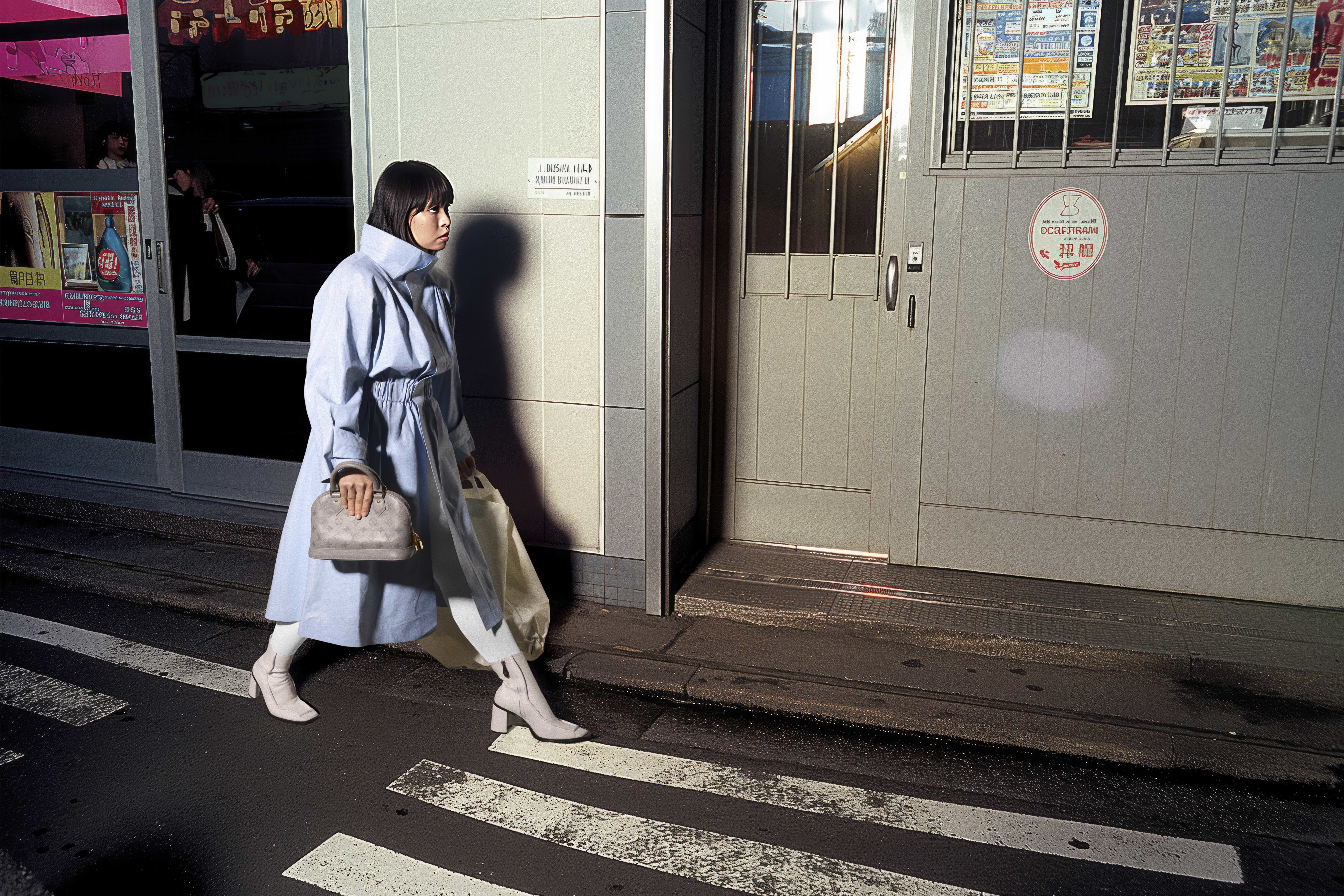 Jacket, shoes and bag LOUIS VUITTON, tights FALKE and plastic bag computer generated