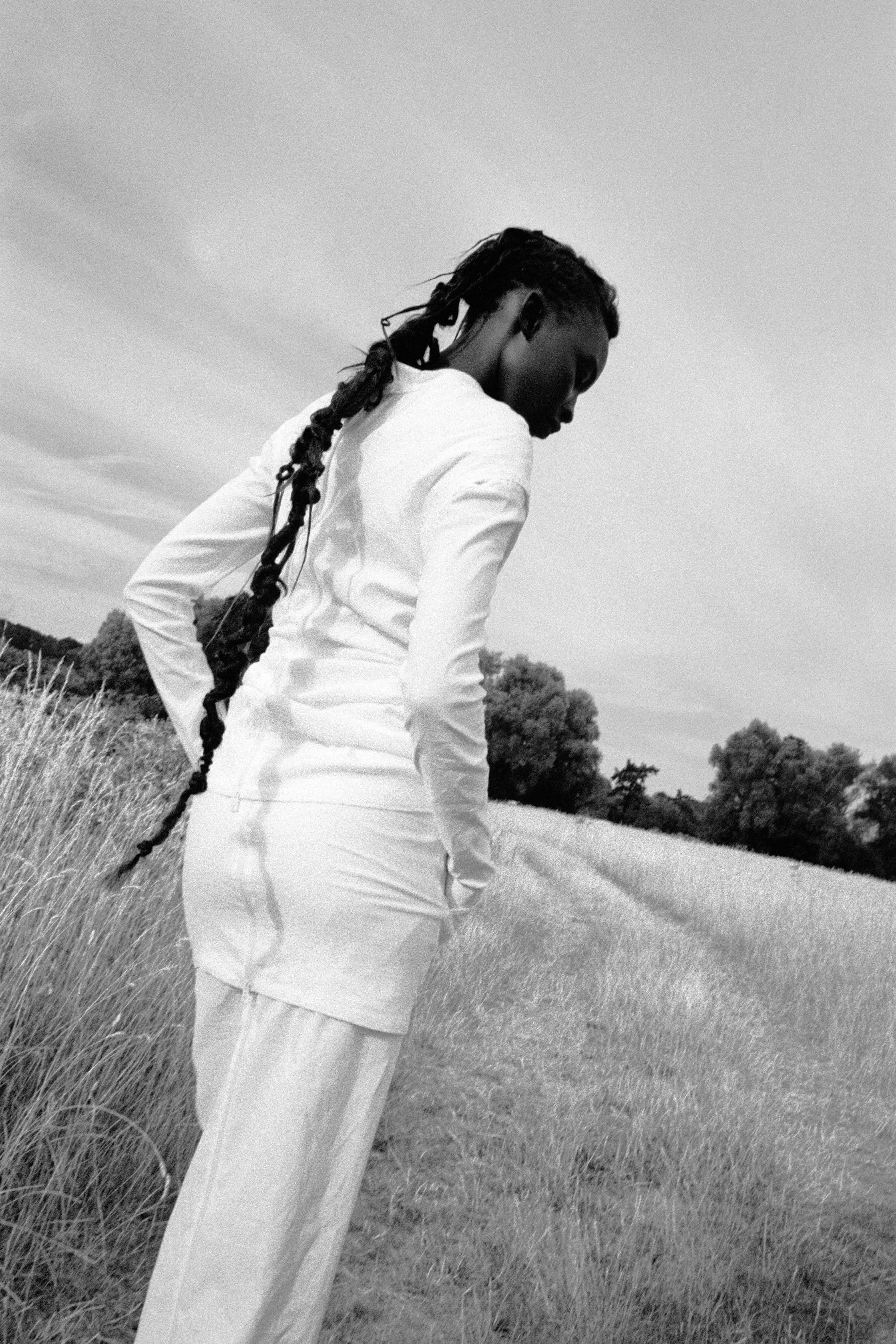 Dress COURRÈGES and hat archive RICK OWENS courtesy of Rellik