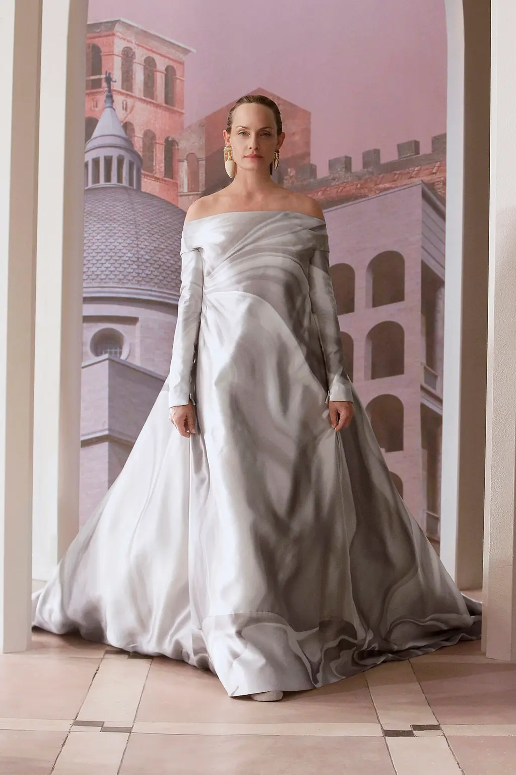 And Jones’s Roman influences didn’t stop there. He looked at the illusory spirit of Bernini’s sculptures to create pressed pleats using pietra dura inlays and rippling jewellery formed from Italian marble. Meanwhile, mother of pearl mosaics were superimposed across tulle dresses, and handbags and shoes, on closer look, resembled the remnants of a crumbling, historical building.