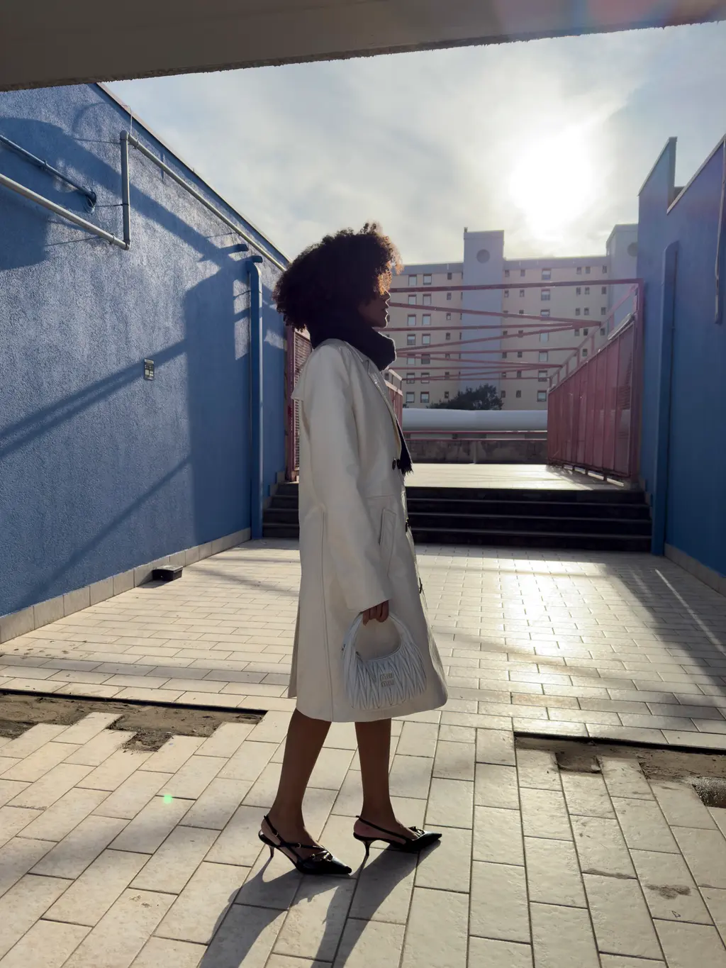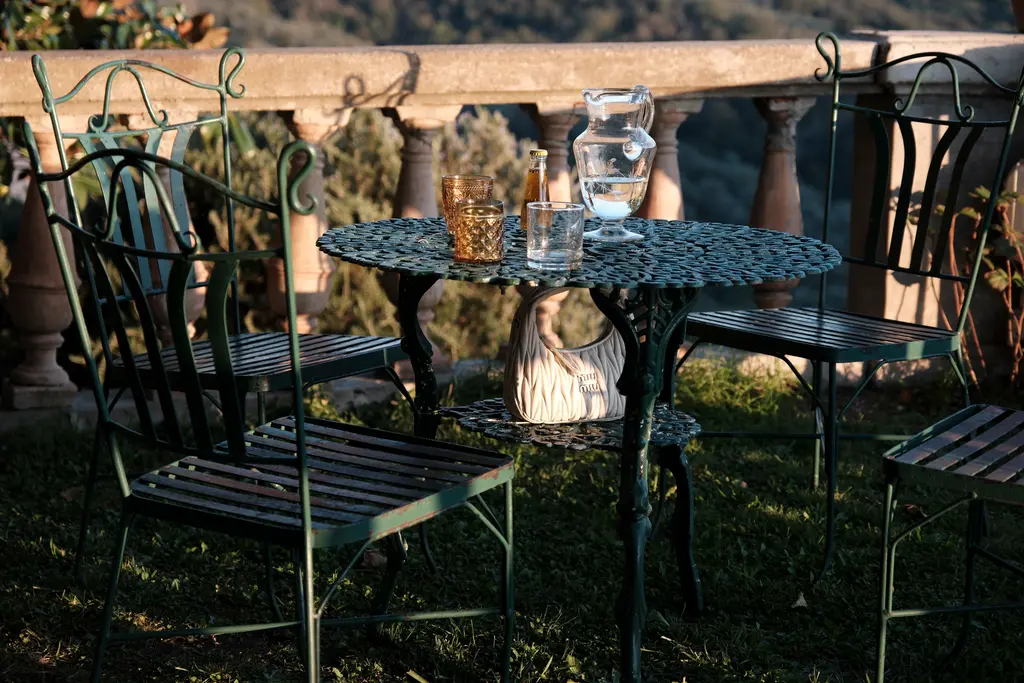 Set in Tuscany and narrated entirely in Italian, the film follows the journey of a Wander bag crafted from intricately braided white leather, adorned with Miu Miu’s signature gold hardware at its centre, and shaped with a gracefully convex handle. “I’ve always really liked what Mrs. Prada does and creates,” Joanna says on the eve of the film’s London screening. “Not just in the fashion world but in the art world, too. I was inspired to put an accessory at the centre of the story because of that interest that I already had in Miu Miu.”