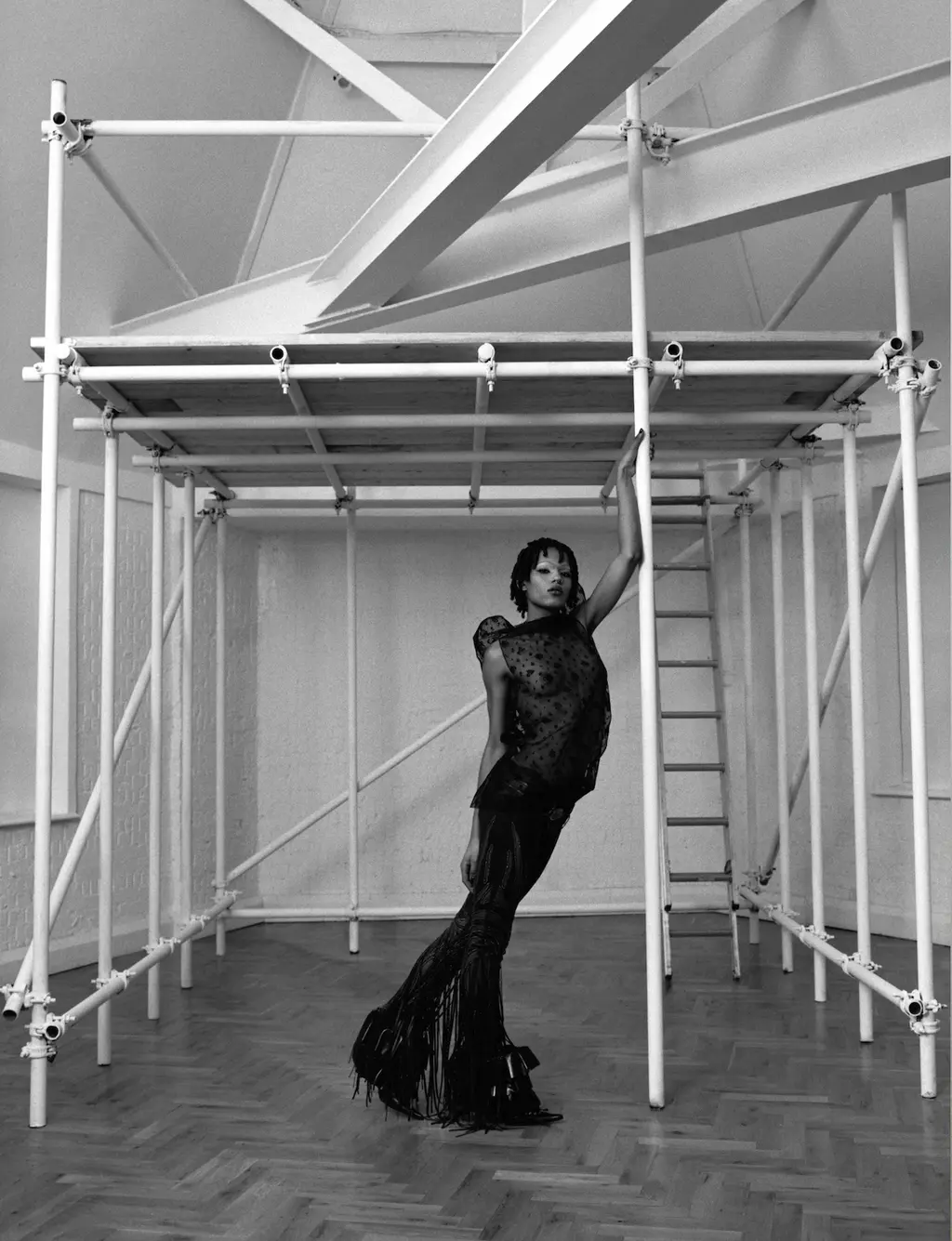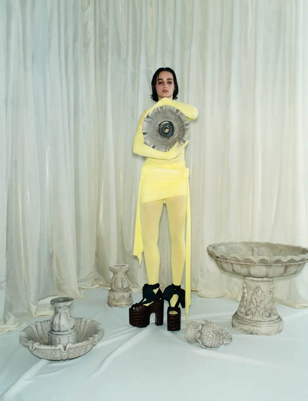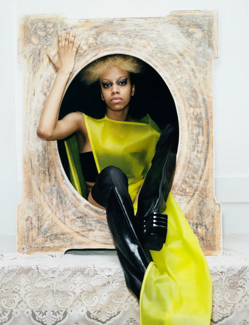Mer wears dress, underwear and boots RICK OWENS and bra ELISSA POPPY