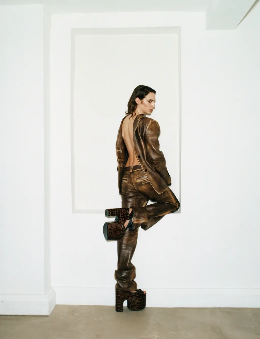 Bella wears jacket, trousers and belt MIU MIU and shoes ANDREAS KRONTHALER FOR VIVIENNE WESTWOOD