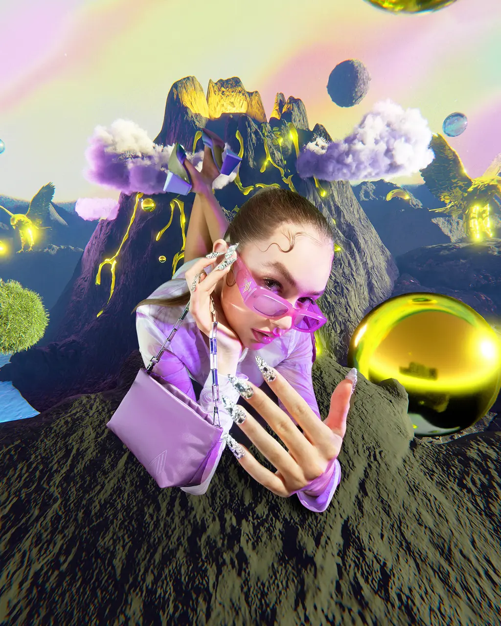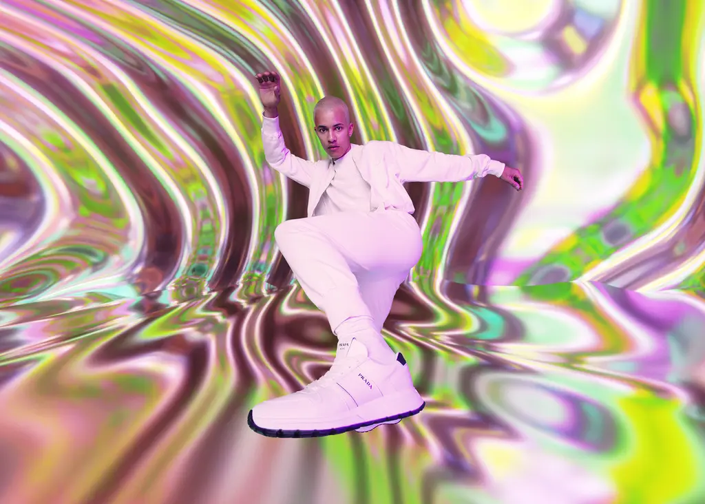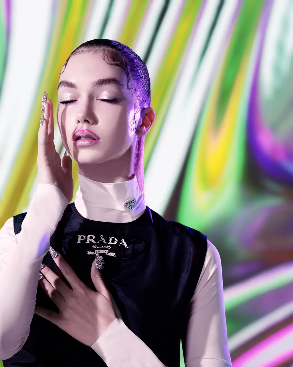 We’ve got to hand it to them; FLANNELS’ supersonic aesthetic is well and truly out of this world. For men, it’s all powder-pink Palm Angels tracksuits and bold Balmain co-ords. The women’s campaign features lilac-silk mules and a Prada pinafore accessorised with gelled baby hair, bedazzled talons and a face mask dripping in crystals. After all, no glow up would be complete without a pair of ice-white Prada sling-back kitten heels.