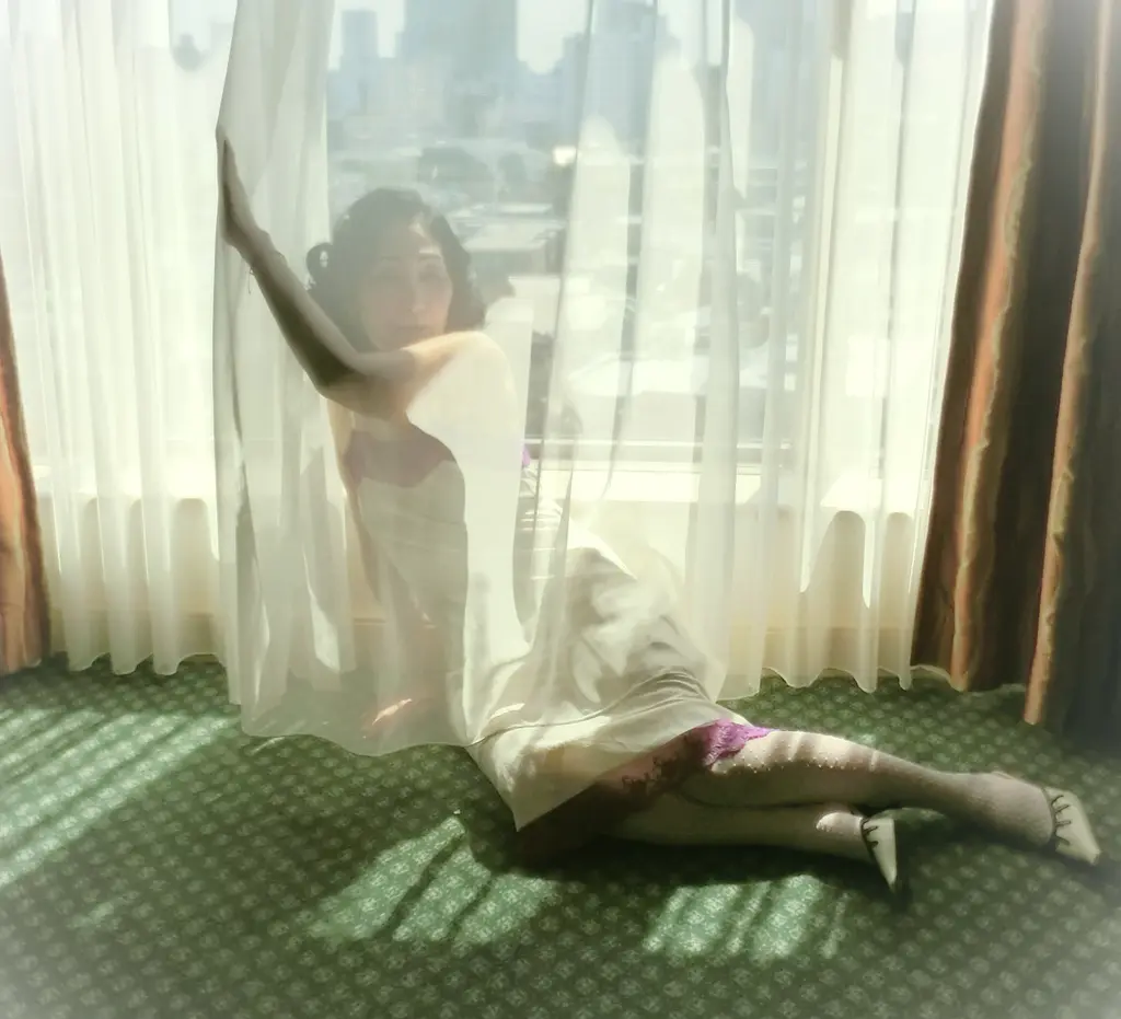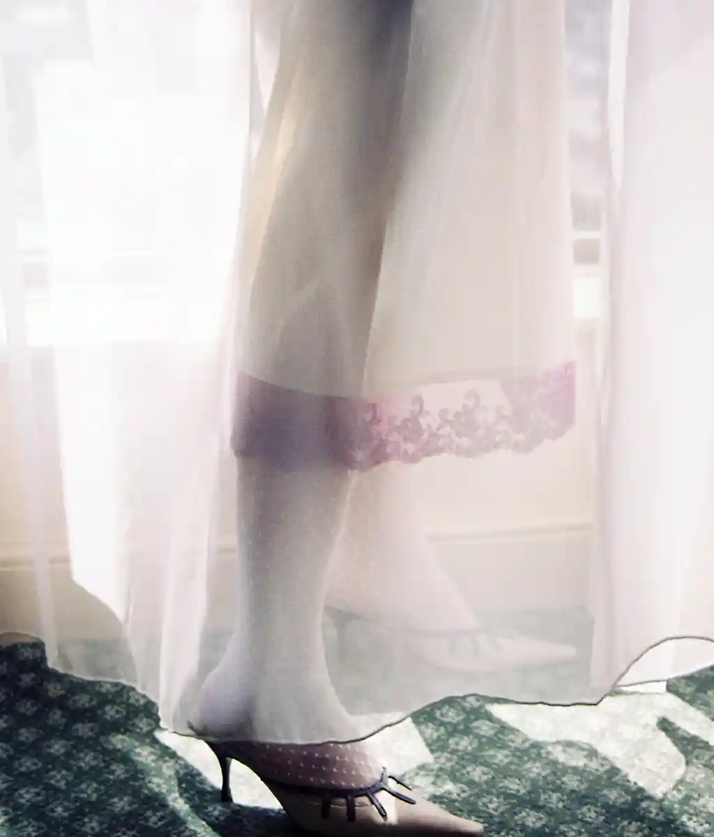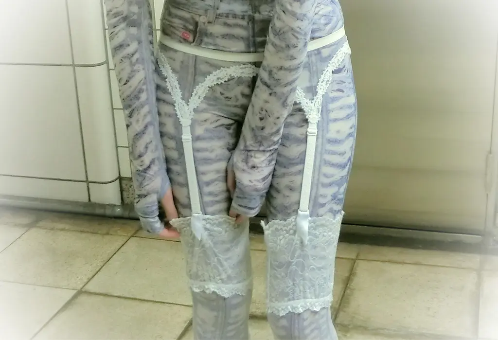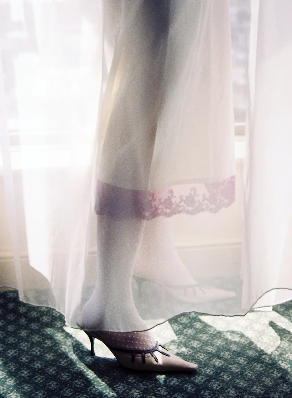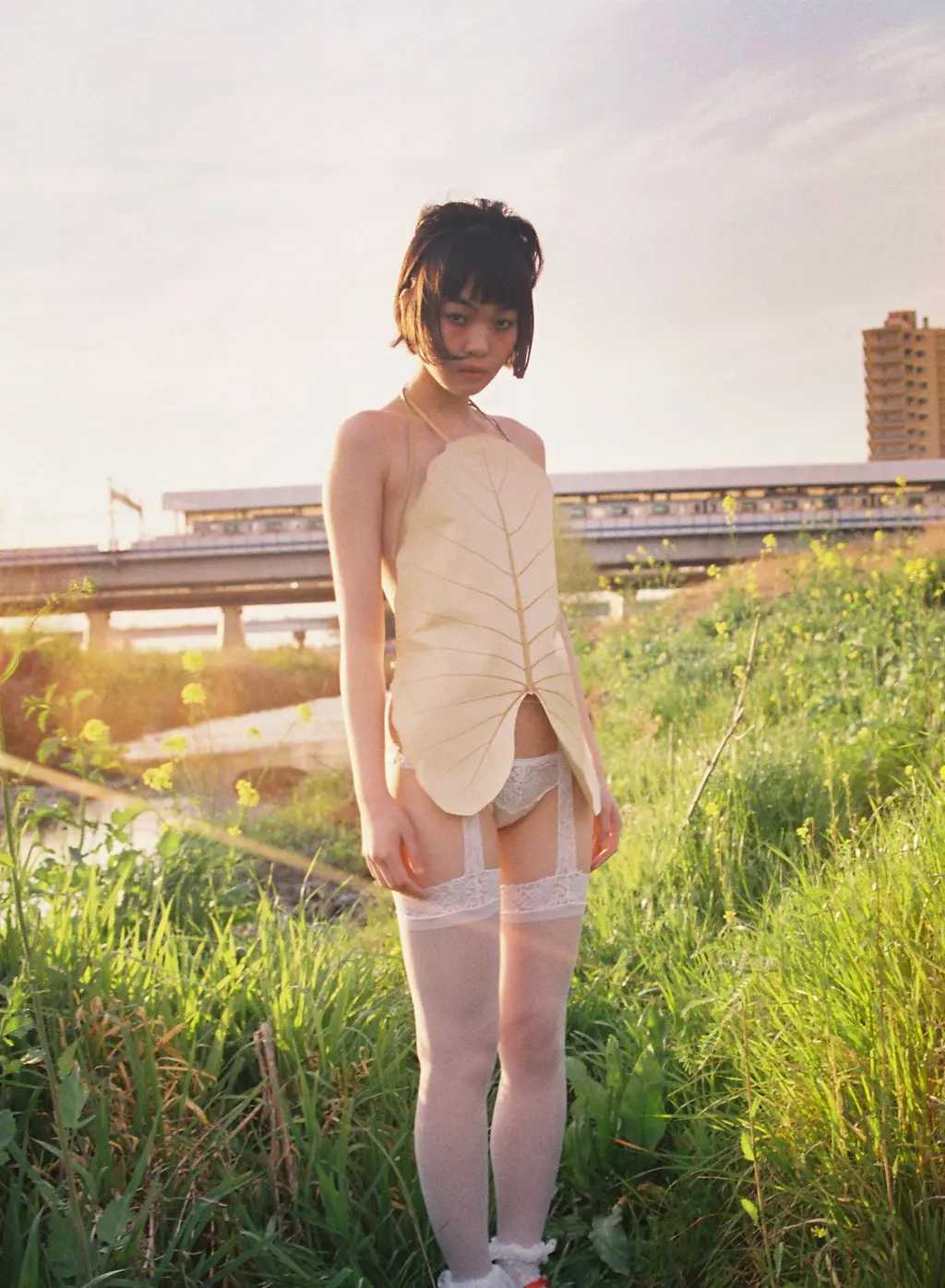 Kayu wears bra AUBADE, shorts archive ITIMI, tights CECILIA DE RAFAEL and stockings ACNE STUDIOS