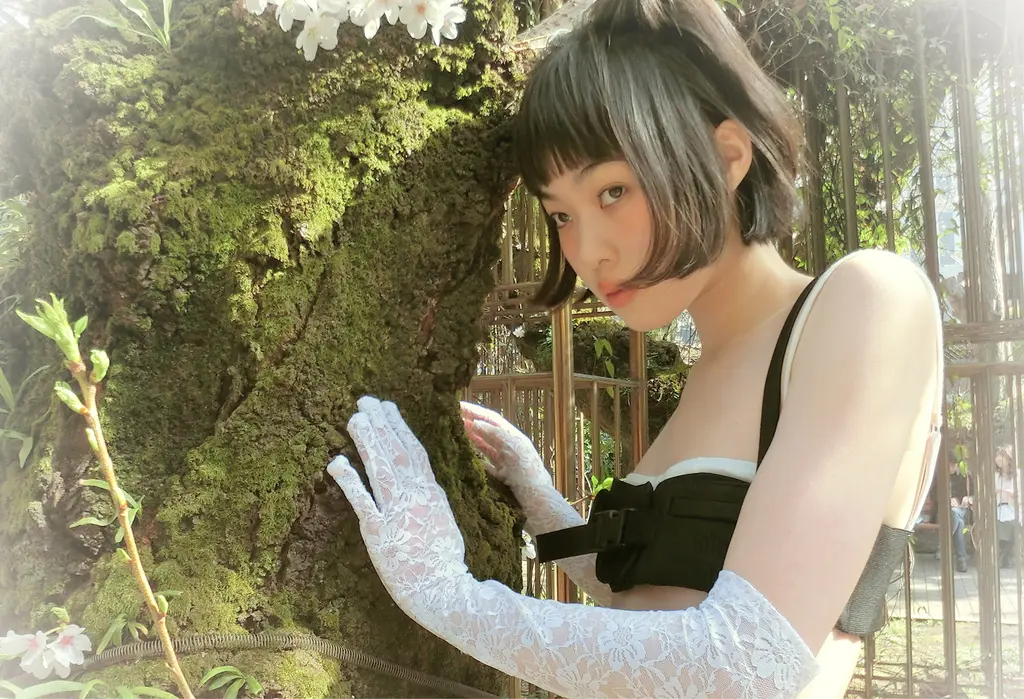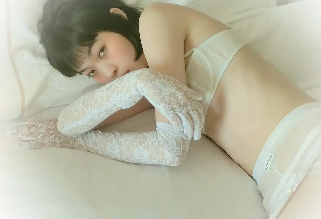 Kayu wears top and bra MIU MIU and gloves MUSIC LEGS