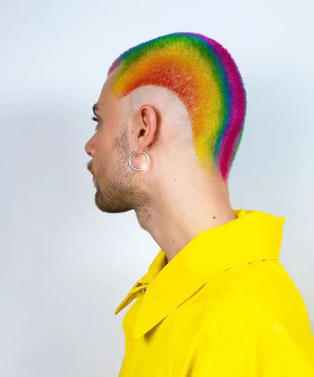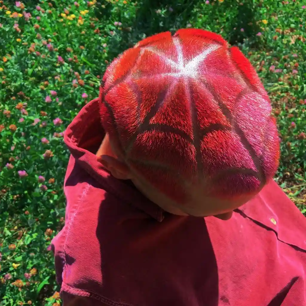 According to Gass, the residents of her sleepy Swiss village aren’t particularly extravagant when it comes to their hair. Still, there is an alternative scene that she chips away at, where it’s easier to meet people who aren’t averse to a flame-printed ’do. So far, she’s painted the heads of various Lausanne youth, students from the city, and those after a killer job for photoshoots, parties, the odd Instagram video or, simply, for a bit of fun. As for her No.1 Customer? She keeps it in the family.