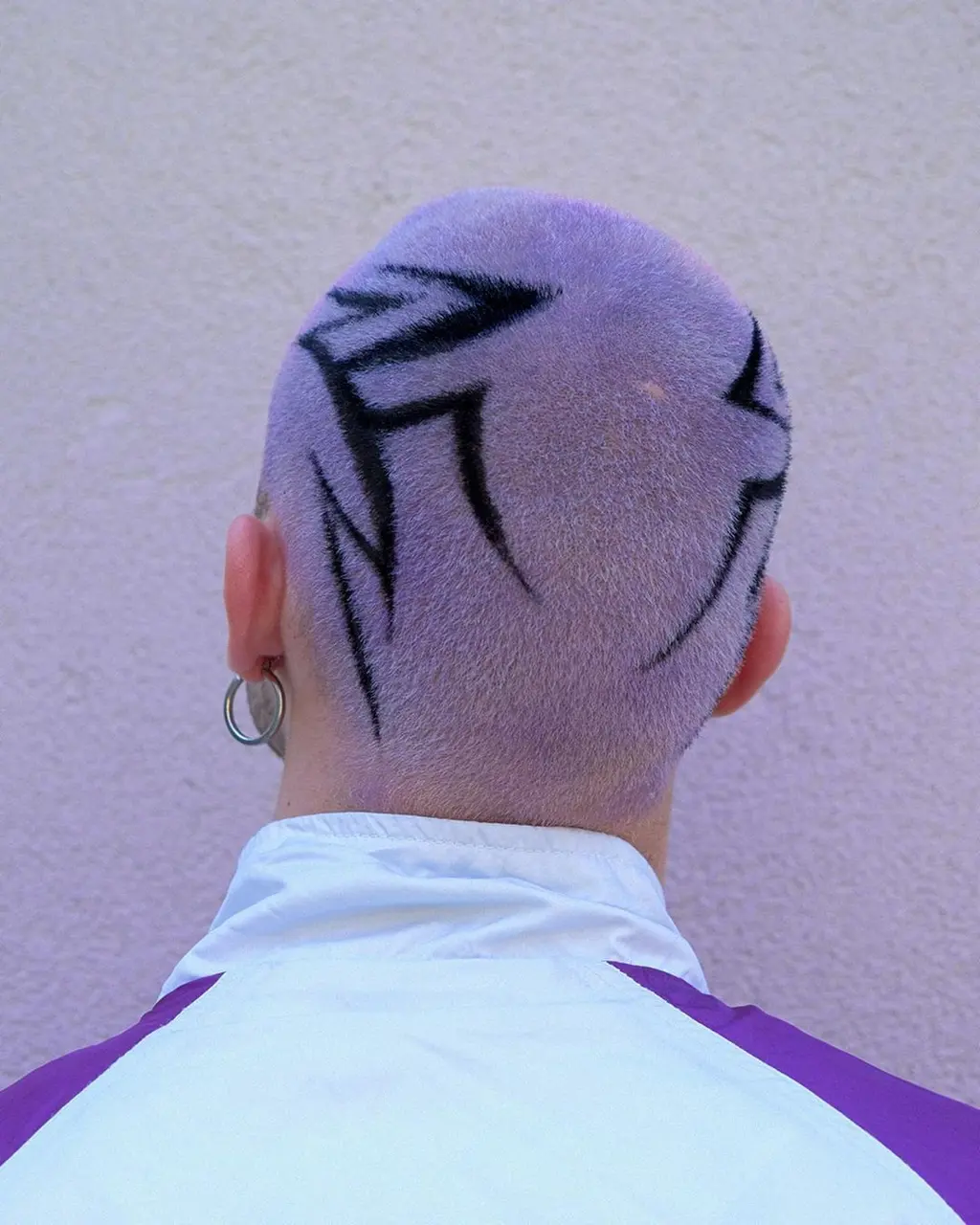 Without any formal training in dying or hairdressing, Gasser is totally self-taught. Working free-hand on each unique design, she applies a 20 – 30 vol oxydant (peroxide) which usually takes around 40-minutes to develop. Depending on the results, and the technical nature of the pattern, the process varies in time length – but each dye job will take “at least three hours” total. Gass favours Bleach London products since they’re vegan and cruelty free. A solid choice, in our eyes.