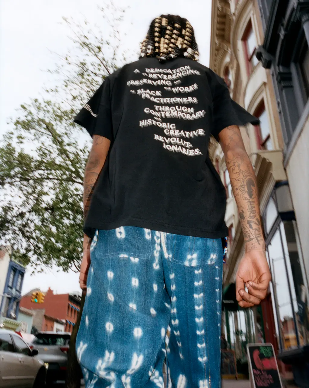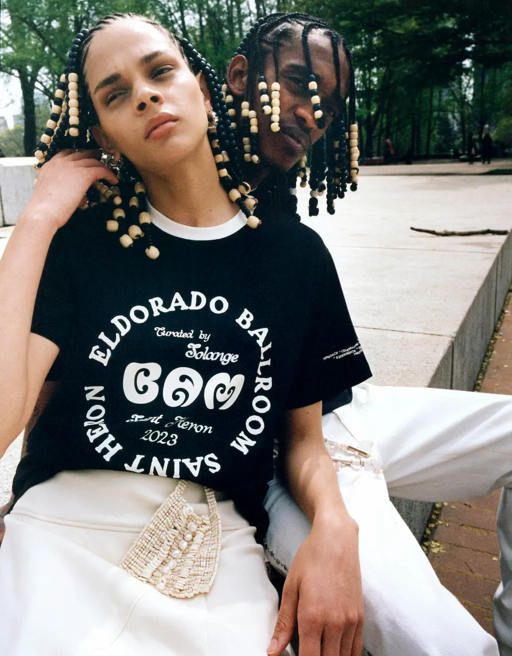 Short-sleeve season is fast-approaching, and so there is no better time for Saint Heron and Wales Bonner to announce a collaborative capsule collection of T‑shirts. It’s no secret both brands dive head-first into research in their respective works, and so Solange Knowles and Grace Wales Bonner’s latest venture acts as a double-whammy documentation of the Eldorado Ballroom performance at Brooklyn Academy of Music’s 2023 music series, which Knowles is curating. The T‑shirt, then, becomes a piece of archival history for Gen-Next. “One of the core purposes of creating Saint Heron was to establish archives for future generations to experience and reflect on the histories that continue to inform and inspire artistry of today and the future,” says Knowles, who founded Saint Heron in 2013.