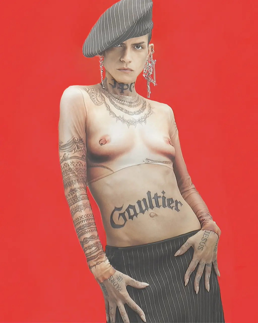 What do you think when you think of Jean Paul Gaultier? Conical corsets? Piercings? Sexy sailors? Ah, yes, and tattoos, which form the back-bone for the label’s new ready-to-wear collection, Tattoo.