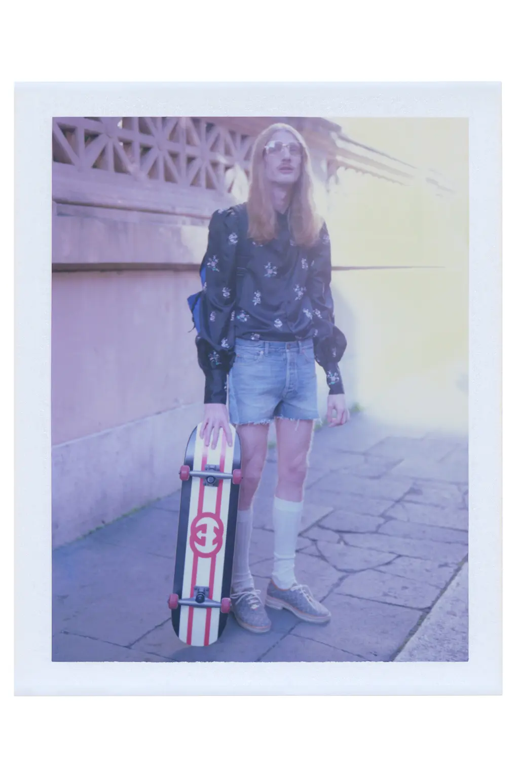 The dreamlike series features artist and performer Silvia Calderoni running errands in Rome. Switching off the tele and slipping on a pair of gold Gucci mules, she starts her day: spying on the neighbours, taking a trip to the post office, visiting the theatre and rummaging through a vintage store. Along the way, she meets some famous friends-of-Gucci faces, like Harry Styles chatting on the phone, Billie Eilish stalking the streets on a chopper, and Florence Welch planting hand-written notes into unsuspecting bags and coat pockets.