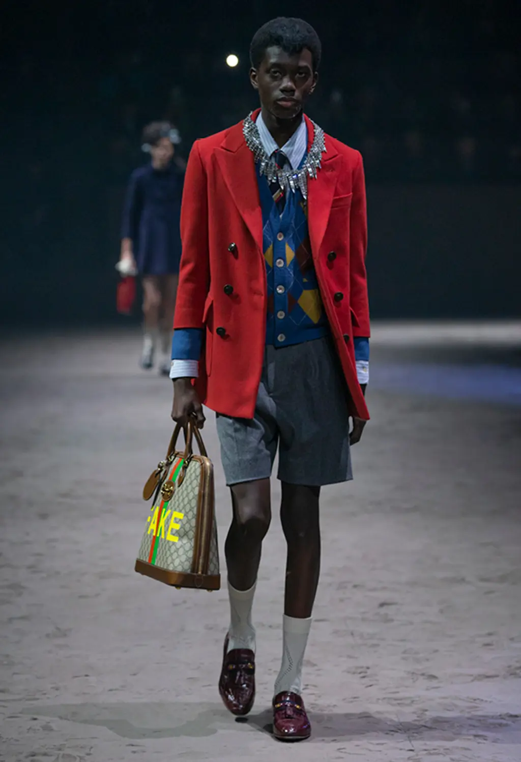 This being the first show of Michele’s fifth year at the helm, and a return to the menswear calendar after a few years of co-ed shows, there was the suggestion that there would be a switch-up in Michele’s mission, but in fact, girls still walked, “womenswear” appeared and the whole thing was a continuation of the winning freaky formula that’s made Gucci a runaway success under his reign.