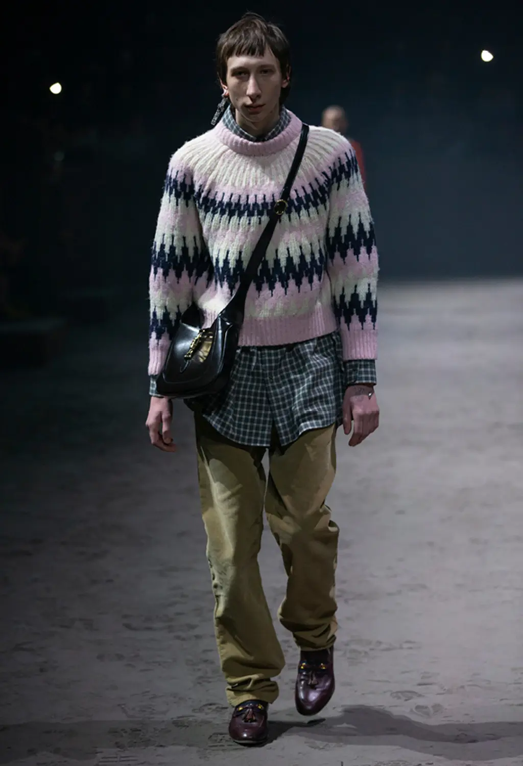 Inspired by the alt-icons beloved of Creative Director Alessandro Michele growing up – Nirvana, David Bowie and Marilyn Manson – Gucci’s AW20 collection encouraged men to embrace femininity, vulnerability and kindness.