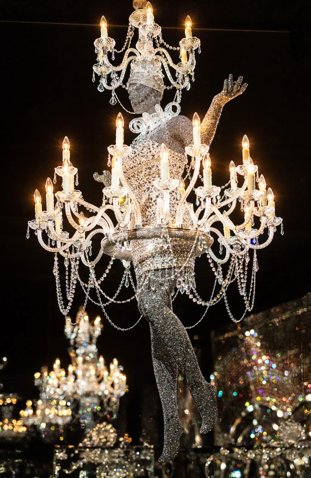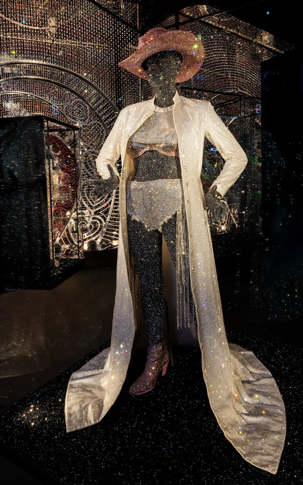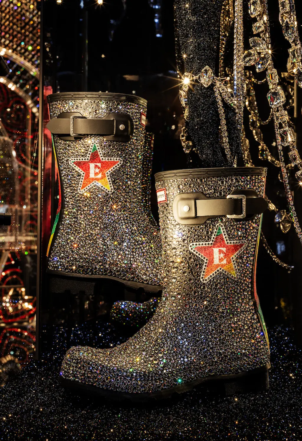 Just before Christmas, we were whisked away to Swarovski’s Kristallwelten museum in Innsbruck, Austria. Its snowy mountain surroundings looked straight out of a postcard, but it was inside the gallery that the real magic happened. First opened in 1995, the museum houses a collection of the crystal maker’s finest moments, from artist interpretations of the crystals by Andy Warhol and Salvador Dalí to the biggest crystal in the world (it’s a whopper). But there’s one exhibition, The Art of Performance, that feels extra special, and camp, not least because it’s home to a pair of crystallised Hunter boots that were worn by Elton John for his Glastonbury performance last year. Not only that, but there’s also a suit worn by Lady Gaga, a dress worn by Marilyn Monroe and the chandelier Katy Perry donned for the Met Gala in 2019.