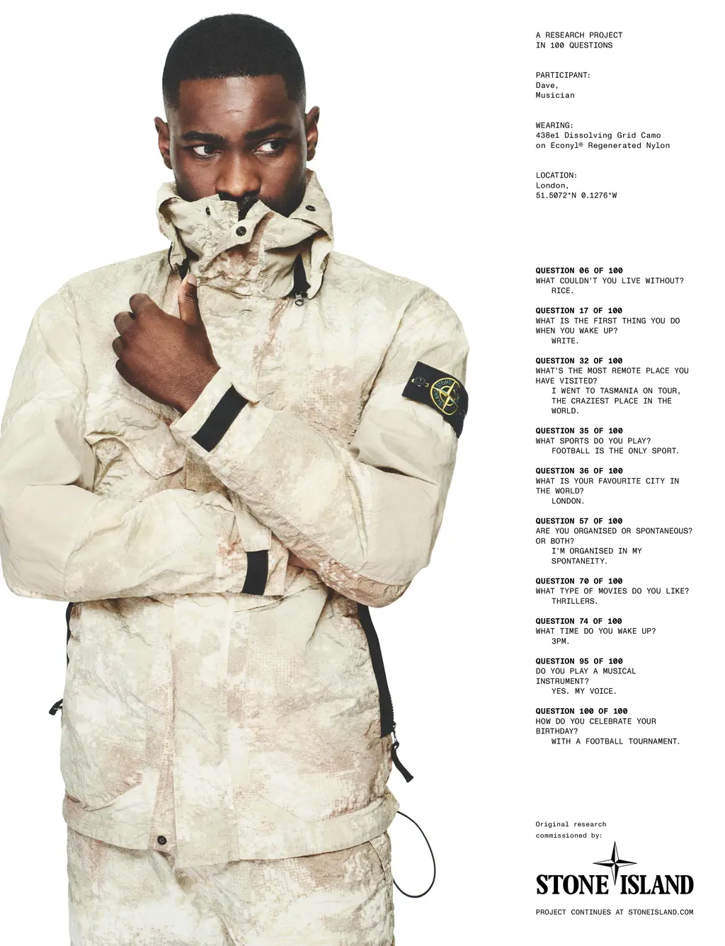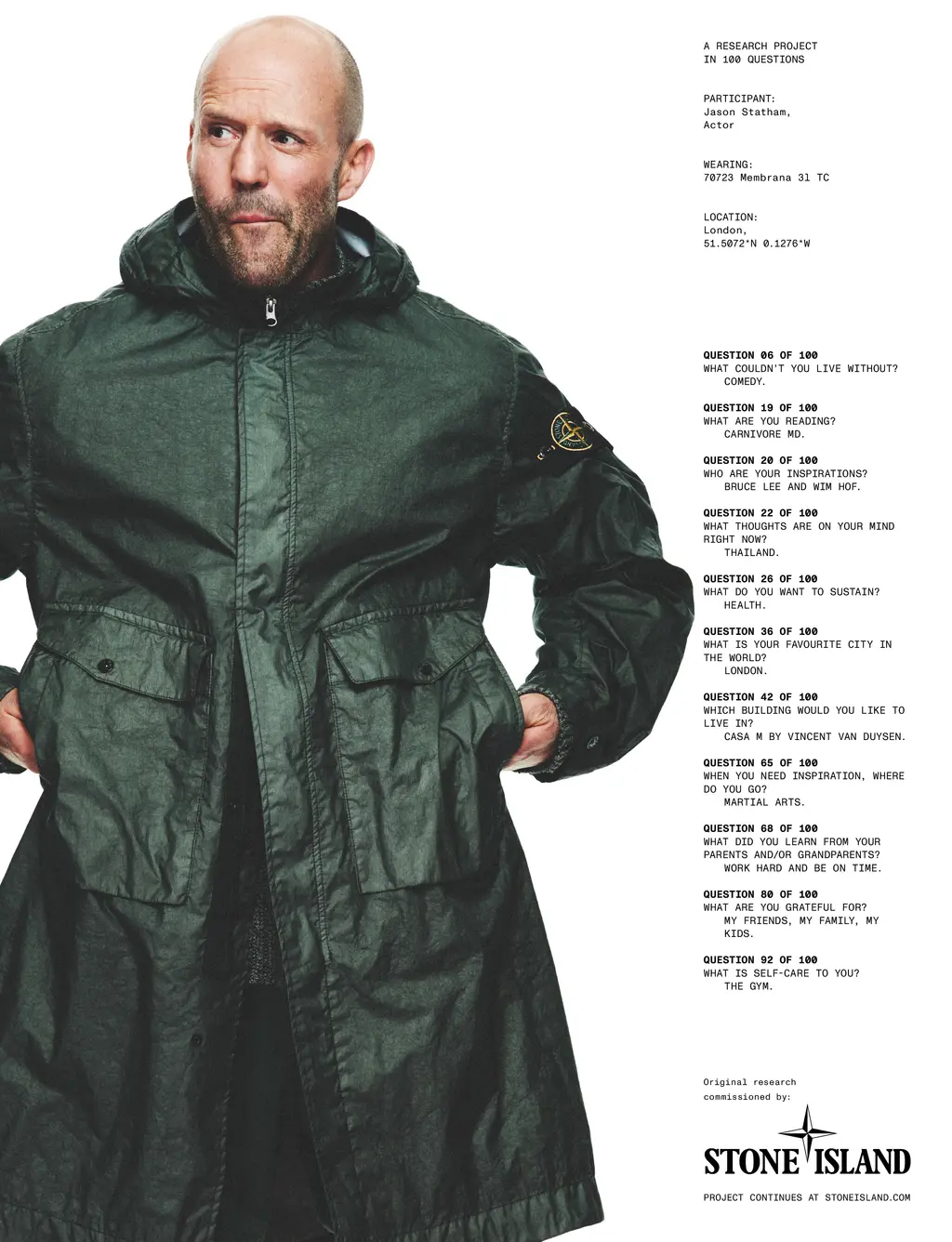 Ever wondered what Jason Statham’s got on his bookshelf? You’re in luck. Stone Island is asking all the right questions in its latest campaign. Recruiting some of the brand’s most famous fans, including the hard-man actor, musicians Dave and Tricky and tennis player Henry Searle, Stone Island put them in the hot seat and launched 100 questions their way to launch the brand’s manifesto: The Compass Inside.