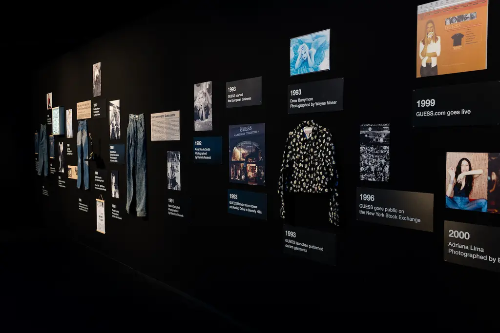 This week, we made a pit-stop at Pitti Uomo in Florence to check out Guess Jeans’ mammoth exhibition, The Next 40 Years of Denim. But before the denim aficionados flung us into the future, we were given a history lesson in the brand’s humble beginnings in Los Angeles, where it was started by brothers Georges, Maurice, Armand and Paul Marciano. Quickly gaining fans for its new, sexy cuts that couldn’t be found elsewhere on the market, Guess went on to produce some of the most provocative fashion ads of the ’80s, ’90s and ‘00s, featuring faces such as Claudia Schiffer, Naomi Campbell, Anna Nicole Smith and Paris Hilton – all of which were plastered on the walls of one of the exhibition’s many rooms, alongside stacks of Guess’ greatest denim hits and displays showcasing the brand’s know-how in printing and design techniques.