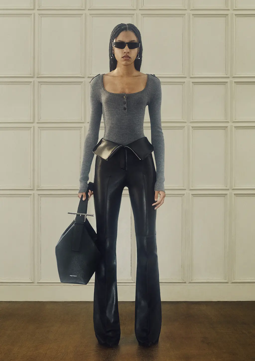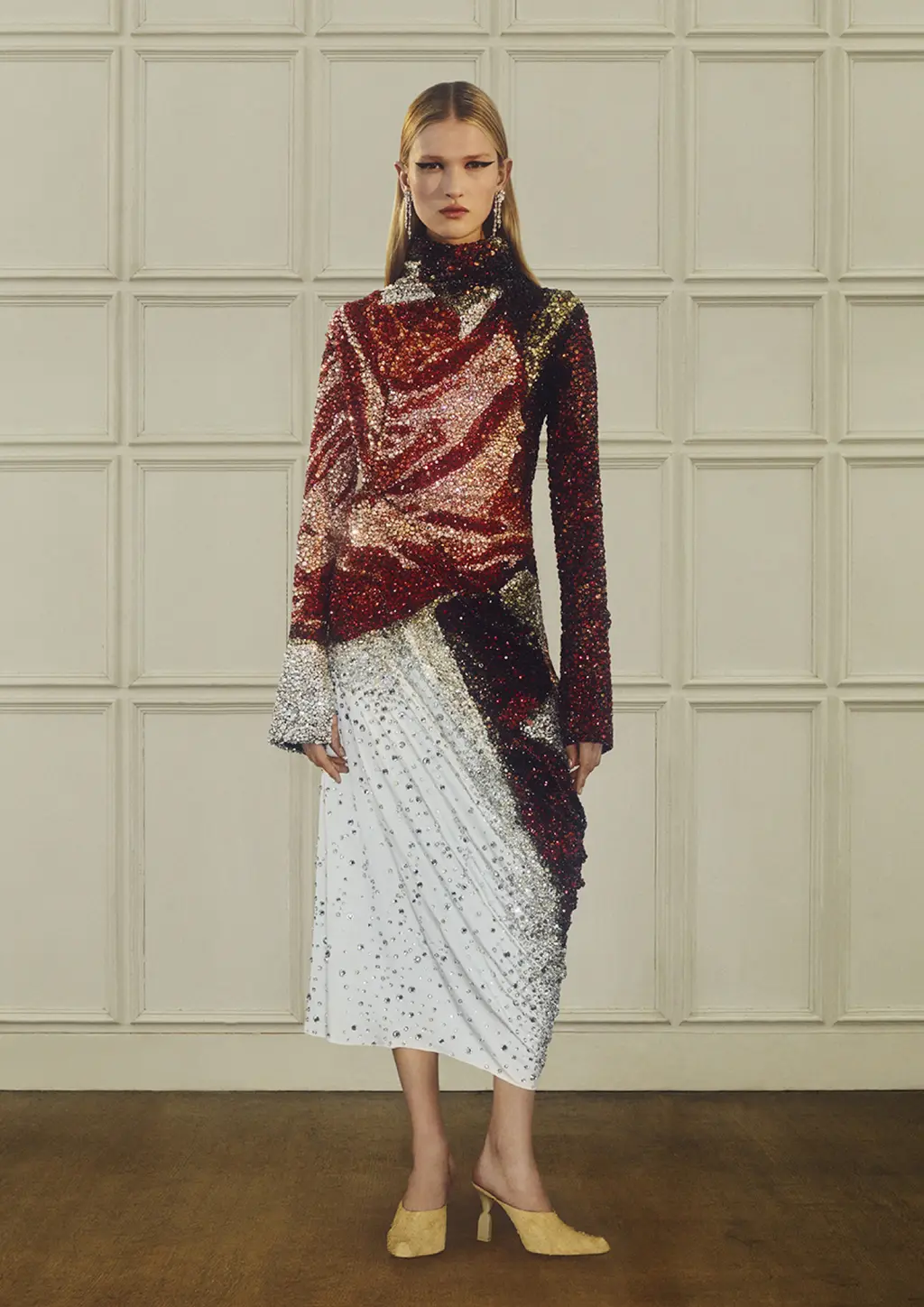 Hoof boots, roll neck jumpers that fall down the body and the renowned skull motif all made a comeback at Seán McGirr’s debut show as Alexander McQueen’s creative director in February. As with any storied house, especially one with a late, beloved designer, tensions were high in the lead-up to the show as the public awaited McGirr’s debut. Now, to say that people were a little confused by the collection would be an understatement, but judging by the resort SS25 line, McGirr is quickly going to make people eat their words. Boasting 32 looks, his resort collection is filled with bling-tastic tops and dresses, extended shirt collars, jeans pockets adorned with jewellery, sumptuous leather trousers with an exposed zip (very raunchy), and nipped-in blazers. Roll on September Fashion Week.